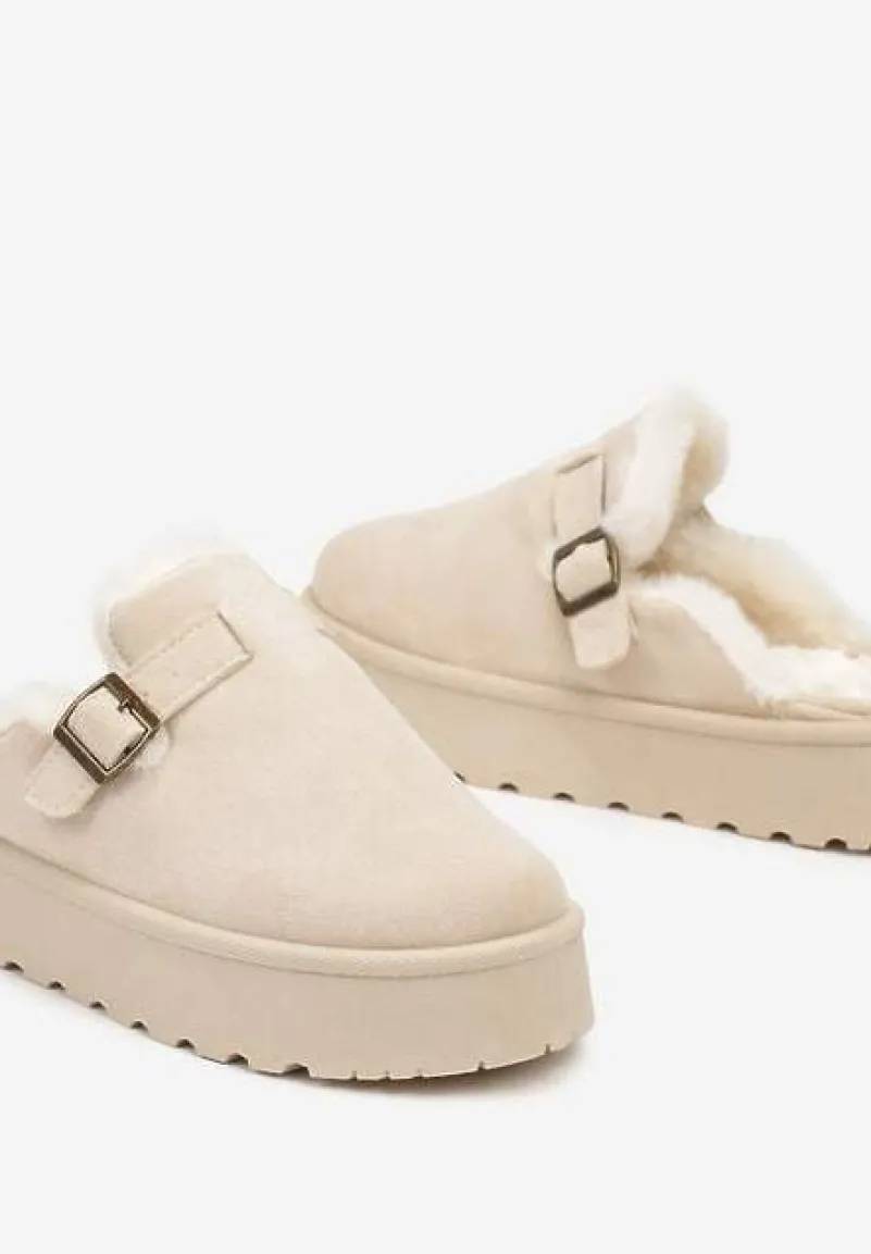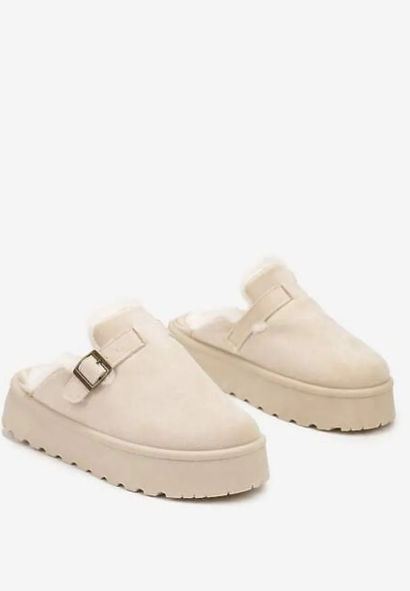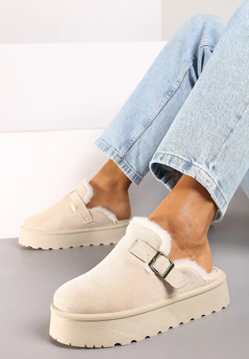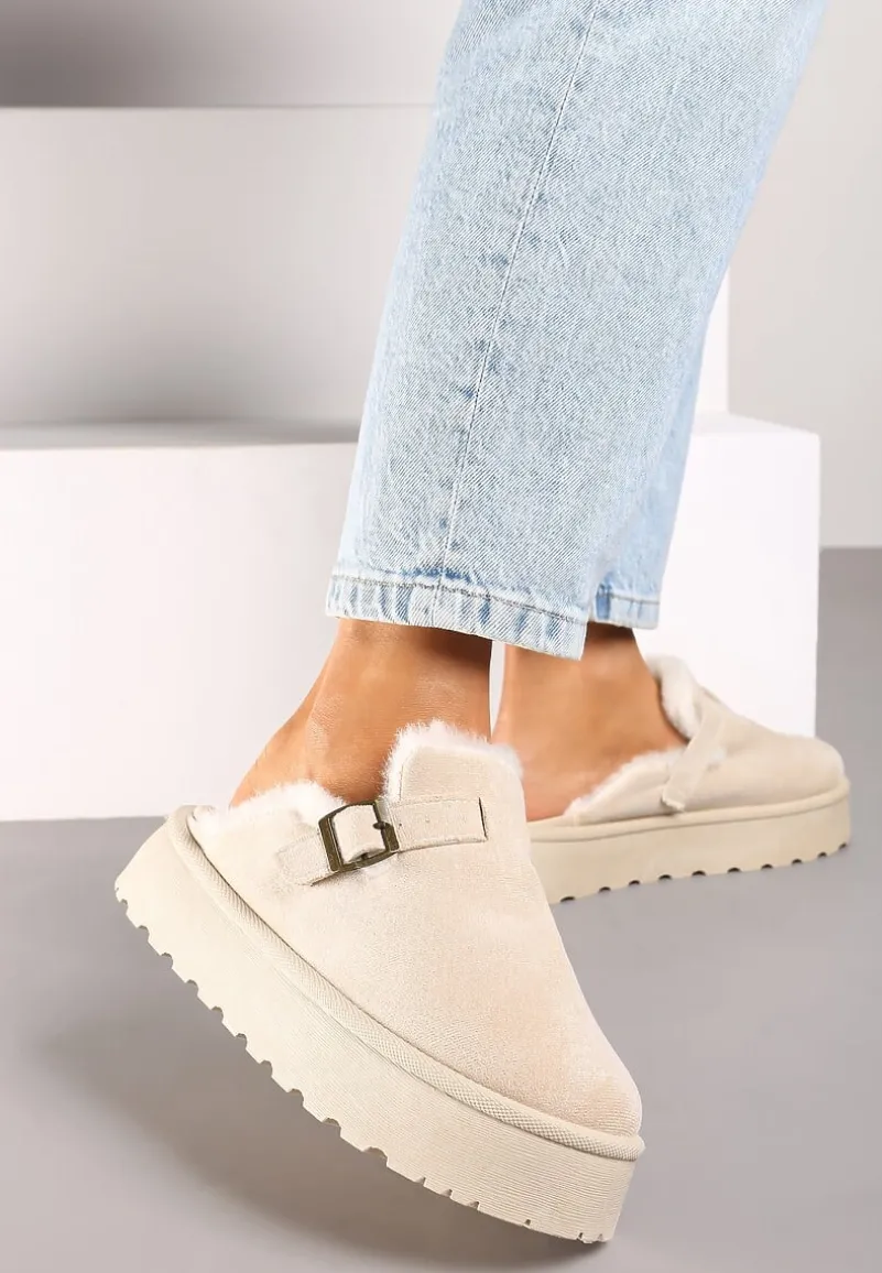 Kapcie Nevelora to synonim domowego stylu w modnym wydaniu. Ich platforma zapewnia stabilizację. Zapięcie na klamrę nie tylko świetnie wygląda, ale również pozwala na indywidualne dopasowanie kapci do stopy. Wykończone w nowoczesnym stylu pasują zarówno do casualowych, domowych stylizacji, jak i eleganckich, wieczorowych zestawów. Możesz je zestawić z modne leginsy i długim, swobodnym swetrem lub z aksamitnymi spodniami i jedwabną koszulą dla szczypty elegancji w domowym zaciszu.