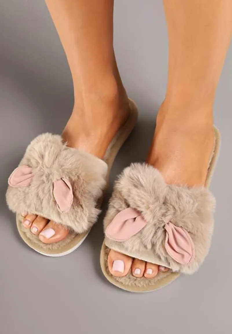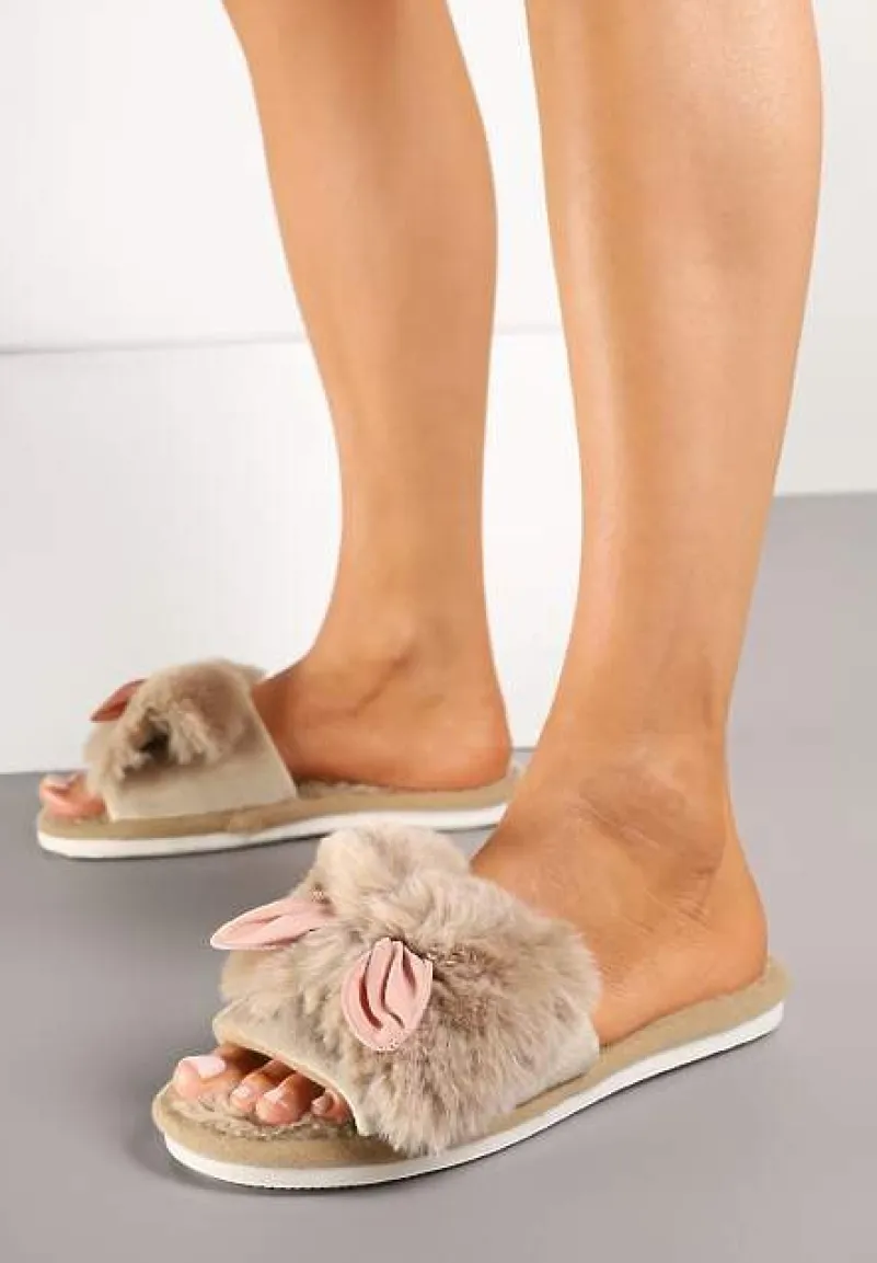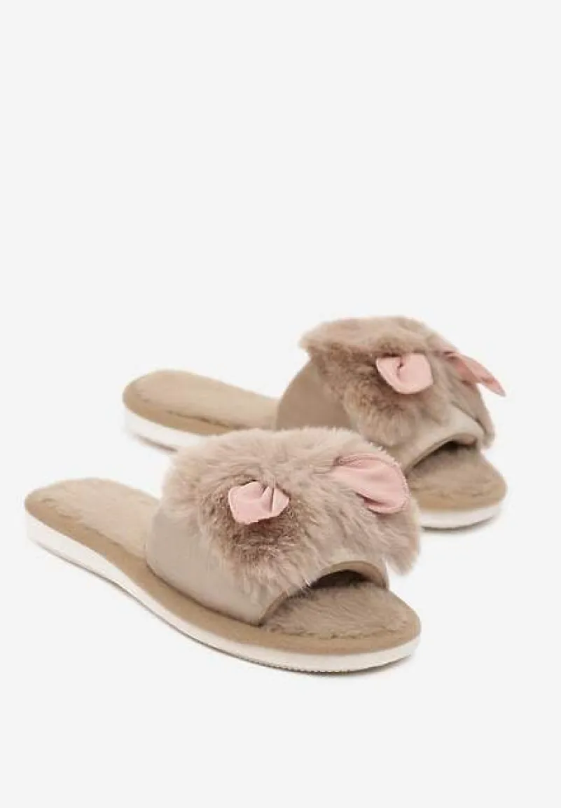 Kapcie Tryphadia z otwartym, zaokrąglonym noskiem i płaskiej, dwukolorowej podeszwie. W całości wykonane z imitacji futerka. Z szerokim paskiem na śródstopiu, który ozdobiony został kokardą. Szukasz komfortowych kapci, które świetnie się sprawdzą po domu? Model Tryphadia będzie idealny! Wybierz większy rozmiar, ze względu na zaniżoną rozmiarówkę.