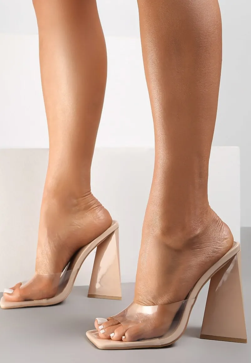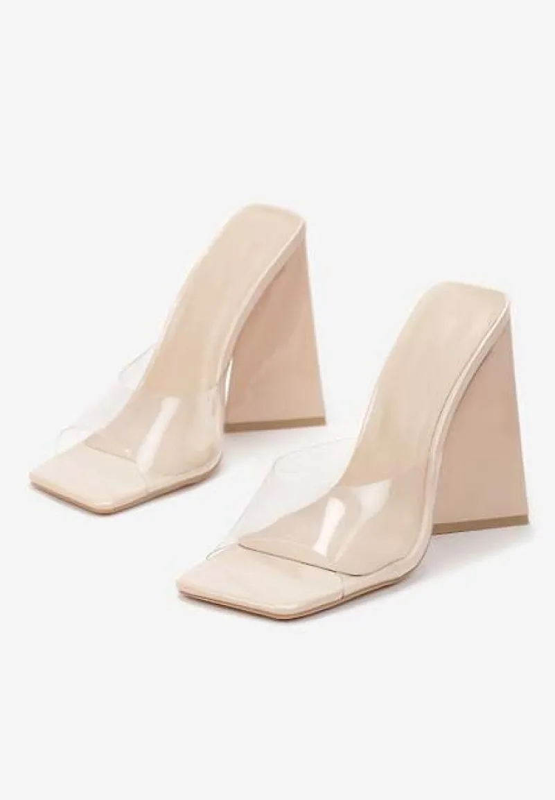 Klapki Aurabelle wsuwane, z otwartym, kwadratowym noskiem. Model na wysokim, geometrycznym słupku. Na palcach znajduje się półprzezroczysty pasek z silikonowego materiału. Wykonane z gumy, z wkładką z ekoskóry. Stworzysz z nimi zachwycający outfit w stylu Fashion Weeka! Pasują do modnych sukienek z dekoltem typu serce oraz kombinezonów z szeroką nogawką.