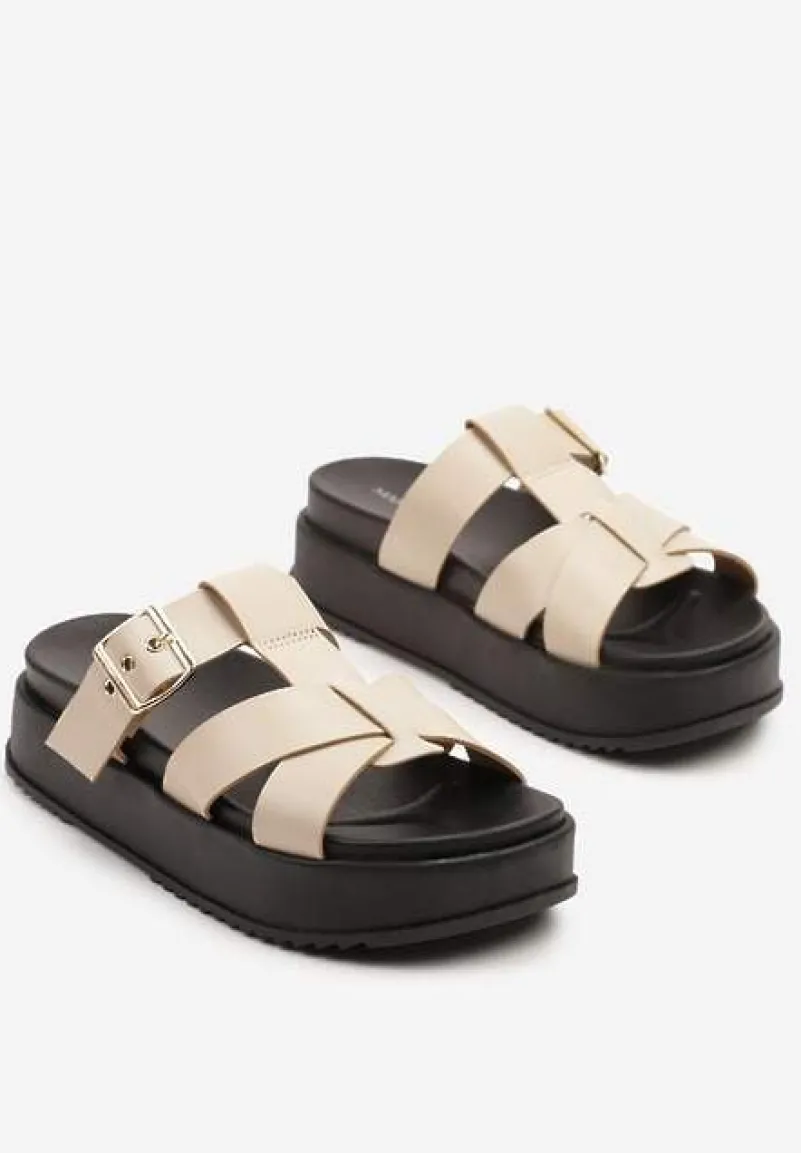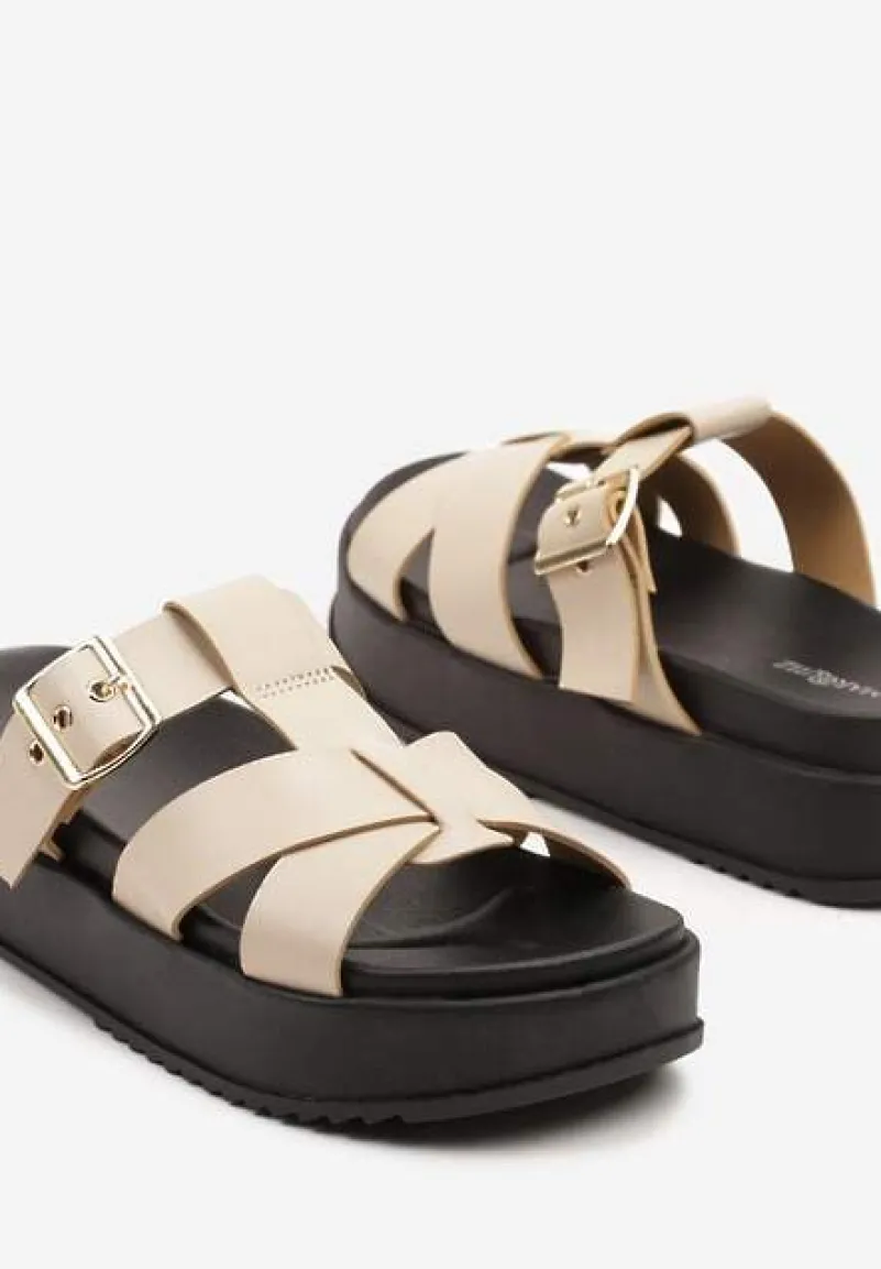 Klapki ozdobione kwadratową klamrą Gavrila to doskonały wybór dla odważnych kobiet, które uwielbiają wyróżniać się w tłumie. Z dekoracyjną klamrą nadaje im wyjątkowego charakteru, dzięki czemu pasują do casualowych stylizacji. Zestaw je z luźną sukienką na co dzień.