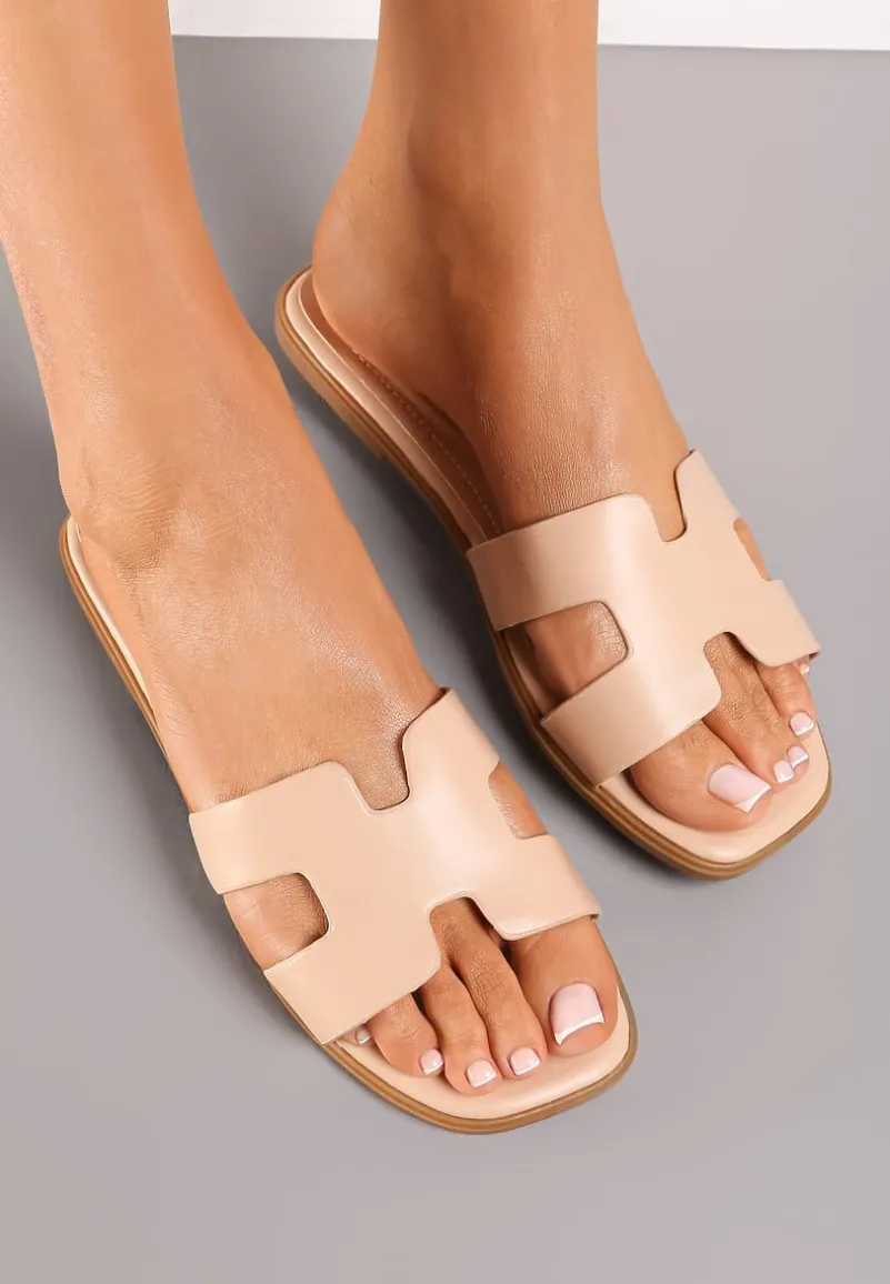Klapki z Imitacji Skóry z Ozdobnymi Wycięciami i Kwadratowym Noskiem Rosila to prawdziwy must-have w Twojej letniej garderobie! Ich efektowne wycięcia dodają elegancji i niezwykłego stylu, idealnego zarówno na codzienne zakupy, jak i na spotkania z przyjaciółmi. Połącz je ze zwiewną sukienką i jeansową kataną, aby uzyskać luźny, ale modny look, lub zestaw je z eleganckimi spodniami i bluzką.