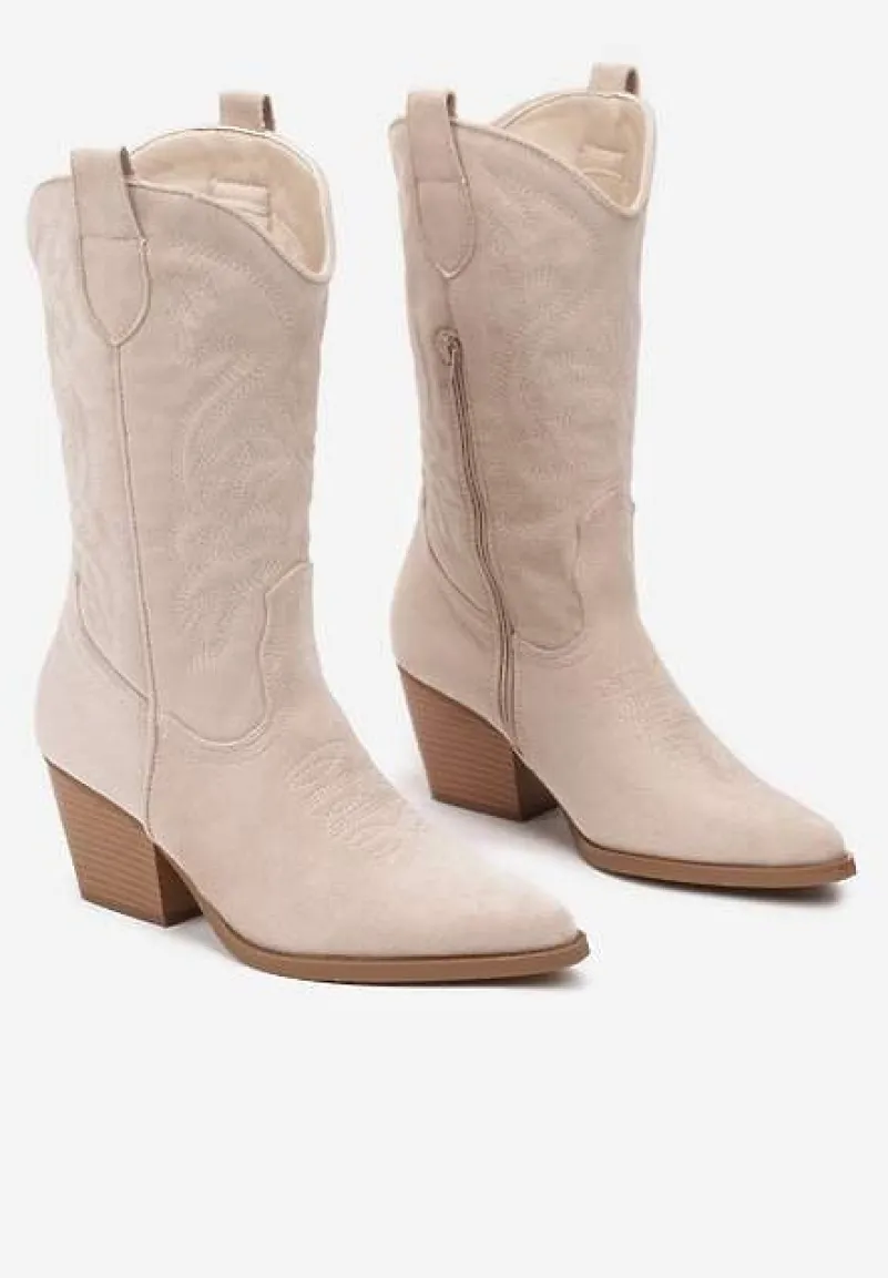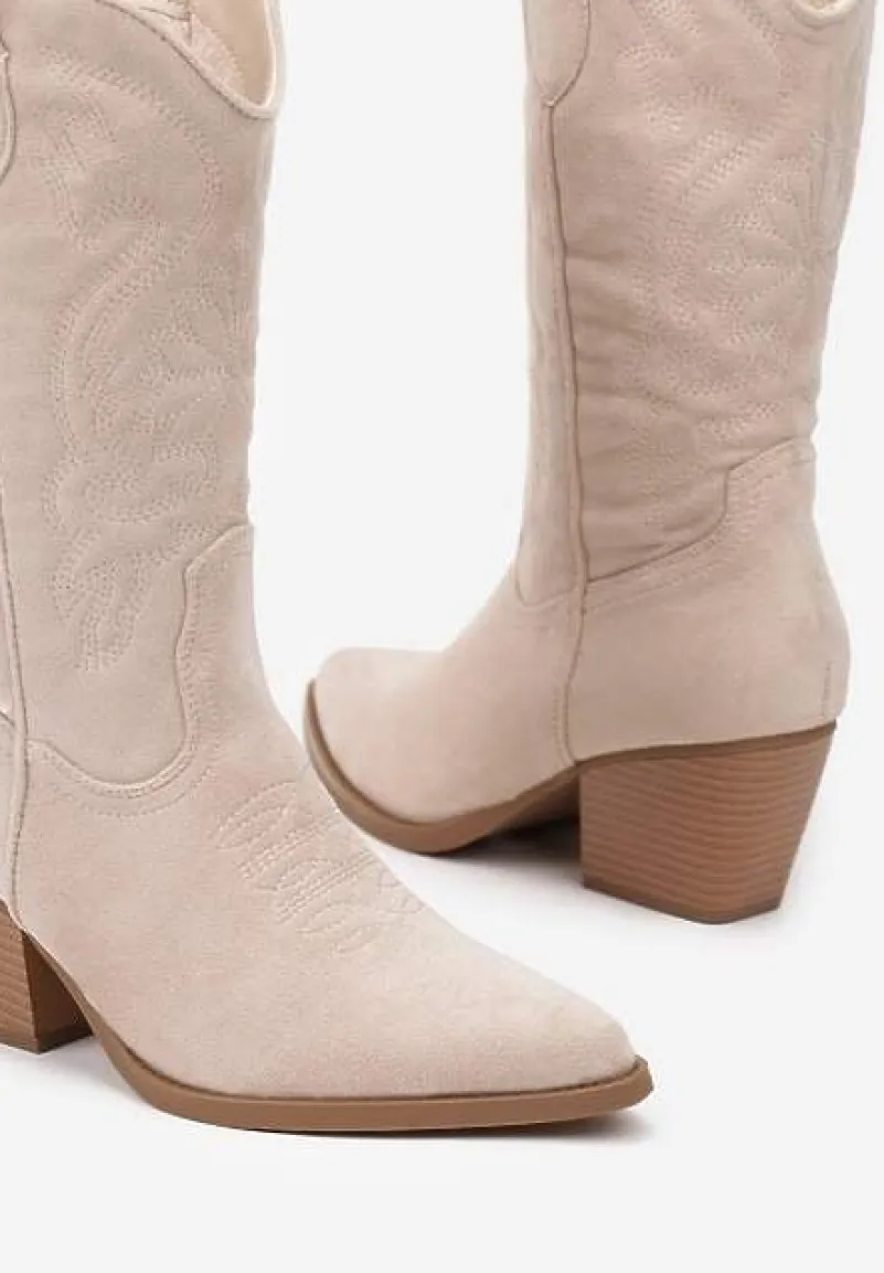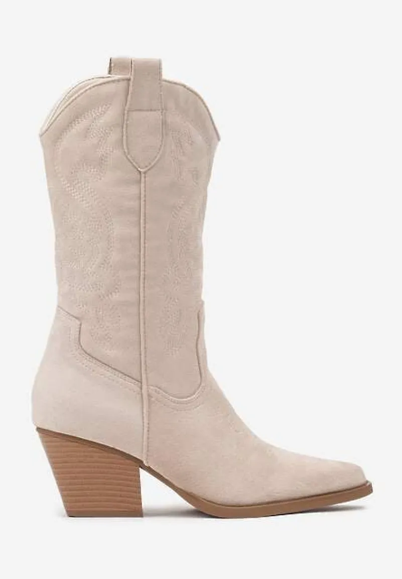 Kozaki Kowbojki Miandriae to must-have dla wszystkich miłośniczek oryginalnego stylu z nutą dzikiego zachodu. Zaprojektowane z myślą o trendach, te buty z ozdobnym tłoczeniem na cholewce dodadzą charakteru każdej stylizacji. Słupek gwarantuje stabilność, a zgrabne zapięcie na suwak ułatwia zakładanie. Idealne na chłodniejsze dni w sezonie przejściowym, świetnie będą współgrać z dzianinową sukienką i skórzaną ramoneską, tworząc codzienny, ale wyrazisty look. Na wieczór wystylizuj je z aksamitnymi szortami i satynowym topem, aby dodać odrobinę westerowego sznytu eleganckiemu wyjściu.