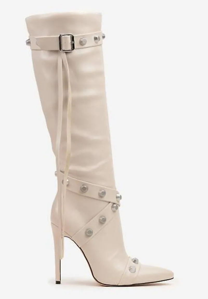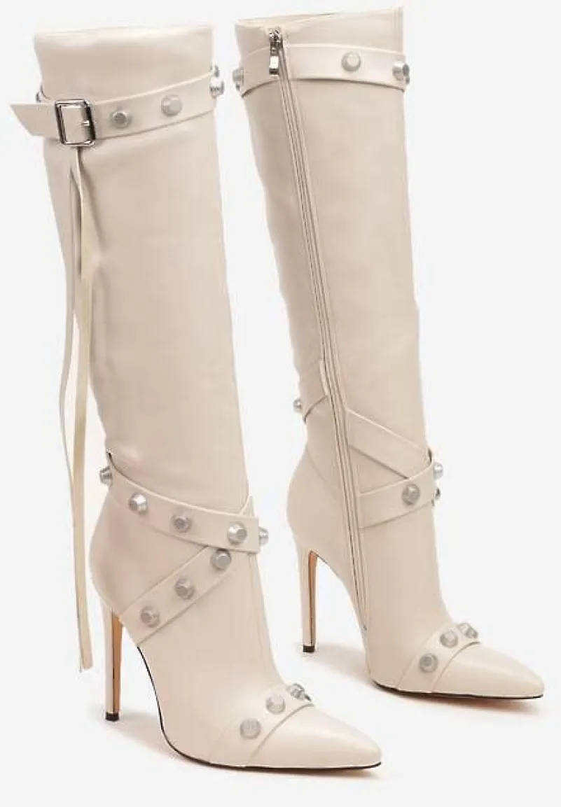 Stylowe kozaki Zinadea to esencja ponadczasowej klasy z nutą rockowego charakteru. Zaprojektowane z myślą o miłośniczkach uniwersalnych fasonów, charakteryzują się szpiczastymi noskami i stabilnym obcasem typu szpilka wysmuklającym nogi. Lekko ocieplane wnętrze zadba o komfort w chłodniejsze dni, a praktyczne zapięcie na suwak ułatwi zakładanie. Wyraziste paski zdobione ćwiekami są jak biżuteria dla Twoich nóg! Stwórz codzienny look, łącząc je z jeansami i skórzaną ramoneską albo wybierz je jako uzupełnienie wieczorowego zestawu z małą czarną — zawsze będziesz wyglądać na czasie.