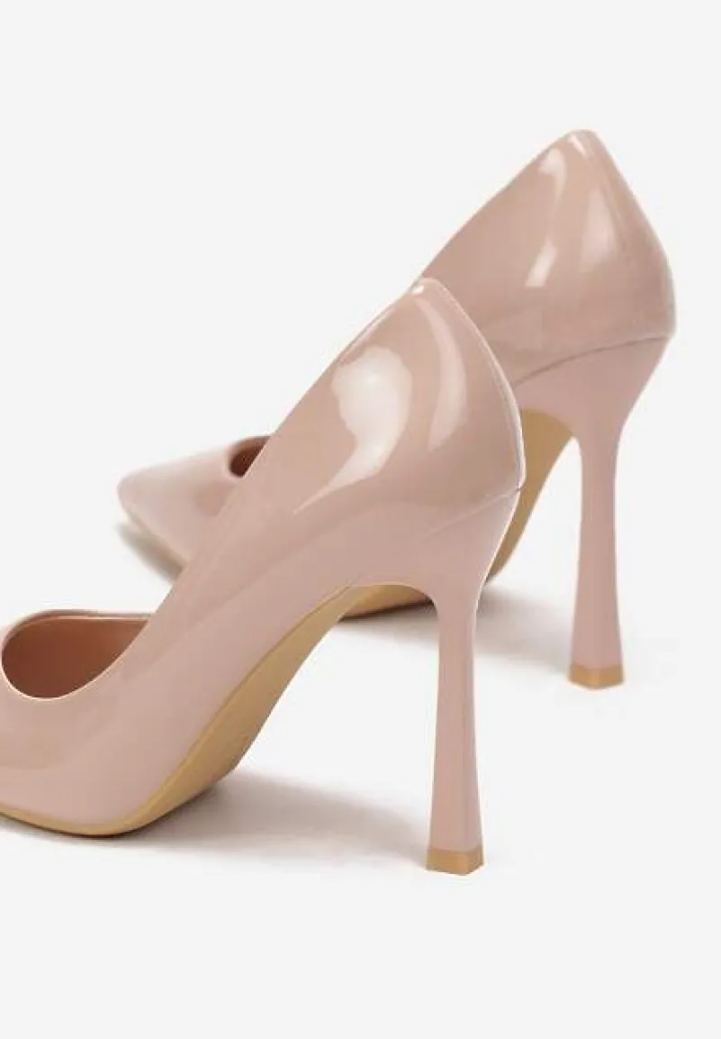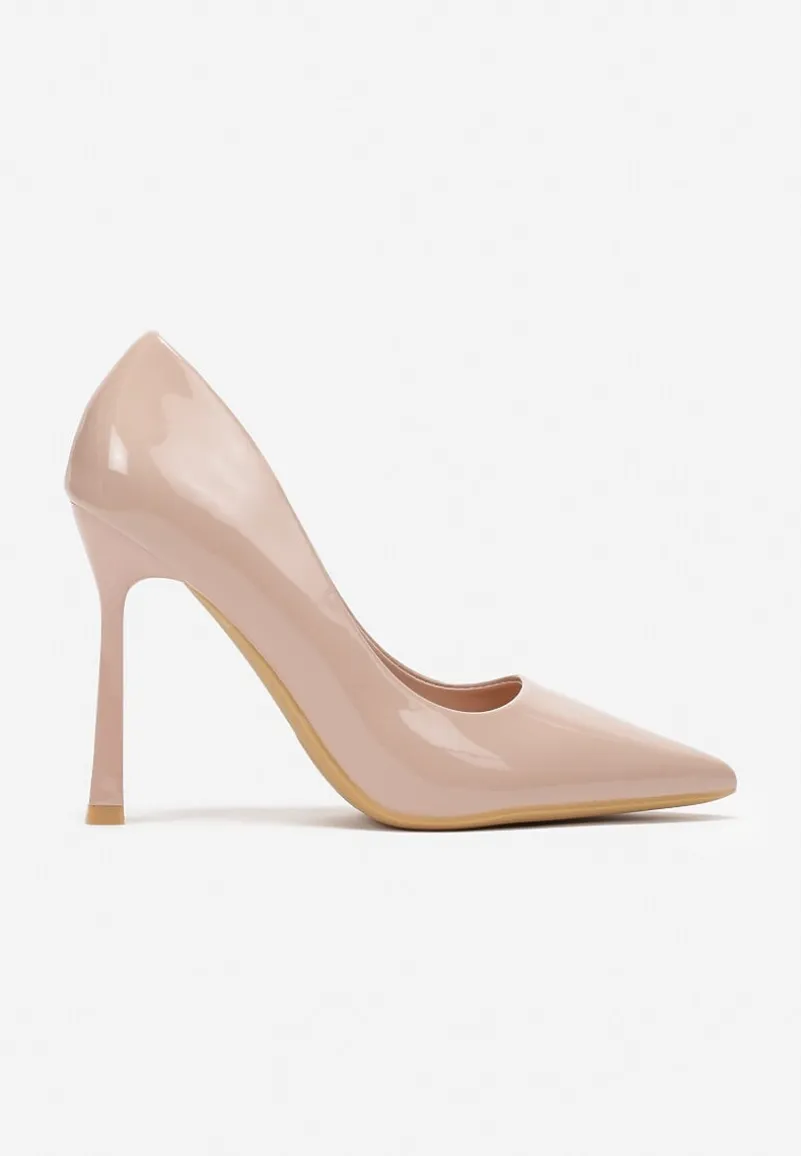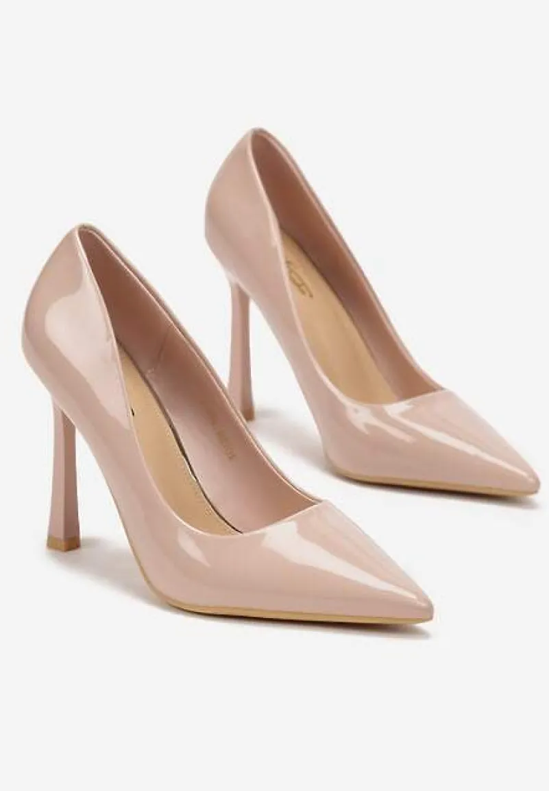 Beżowe Lakierowane Szpilki z Imitacji Skóry o Gładkiej Fakturze Rosaia
