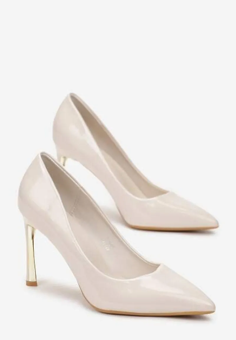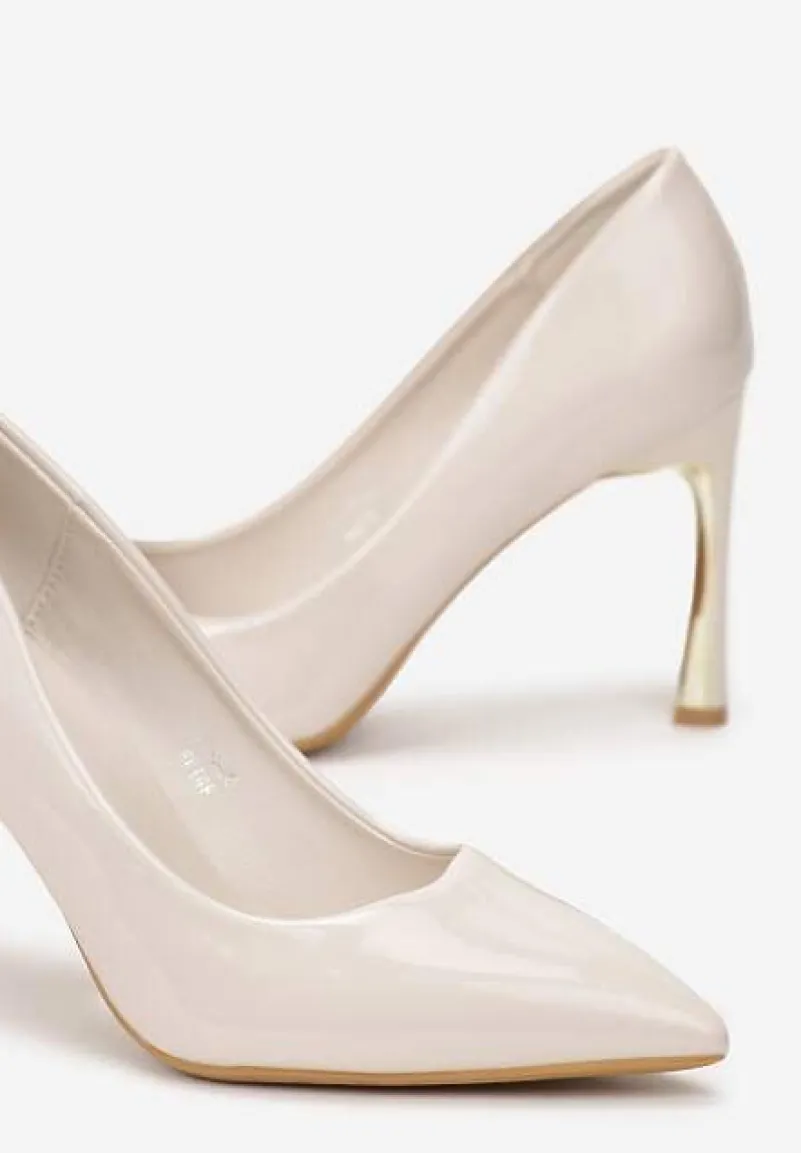 Beżowe Lakierowane Szpilki z Metaliczną Wstawką Dhere