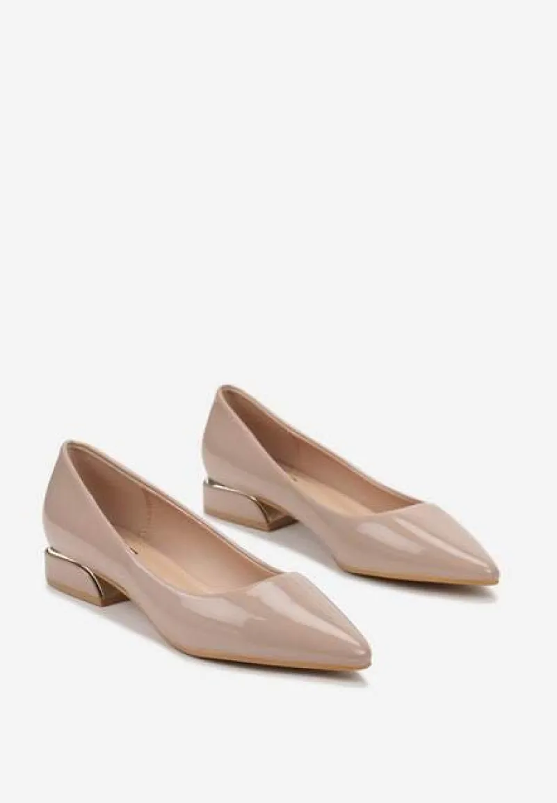 Czółenka Sakane – płaskie, z metalicznym akcentem na obcasie. Jednolita kolorystyka.