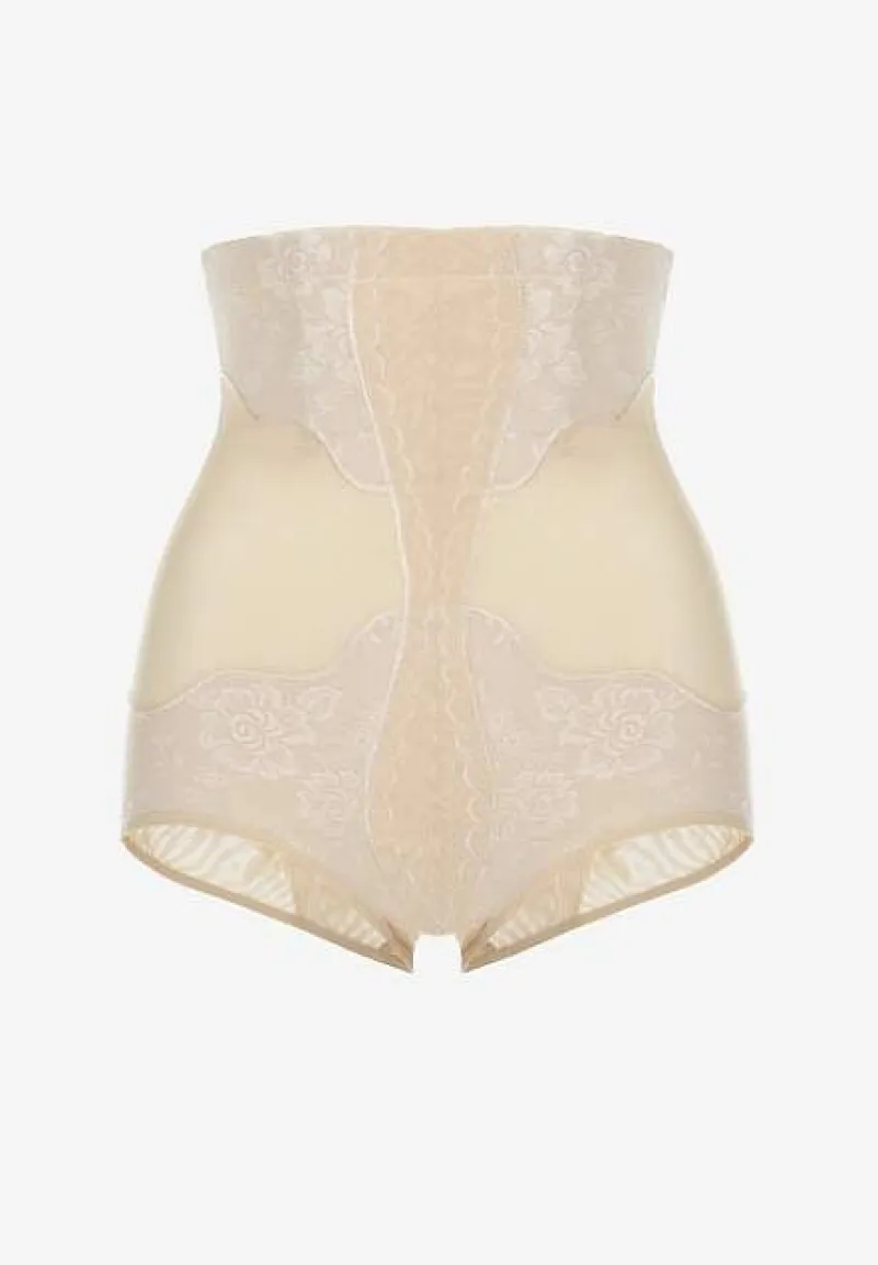 Majtki Temara zdobione delikatną koronką z kwiatowym wzorem. Modelujące majtki z wysokim stanem. Doskonale wymodelują zarówno pośladki, jak i talię oraz biodra. Wykonane z elastycznego materiału z przewagą bawełny w składzie (bawełna 86%). Krój z linii plus size, dostępny w większych rozmiarach. Uwaga: ze wglądów higienicznych produkt nie podlega zwrotowi.