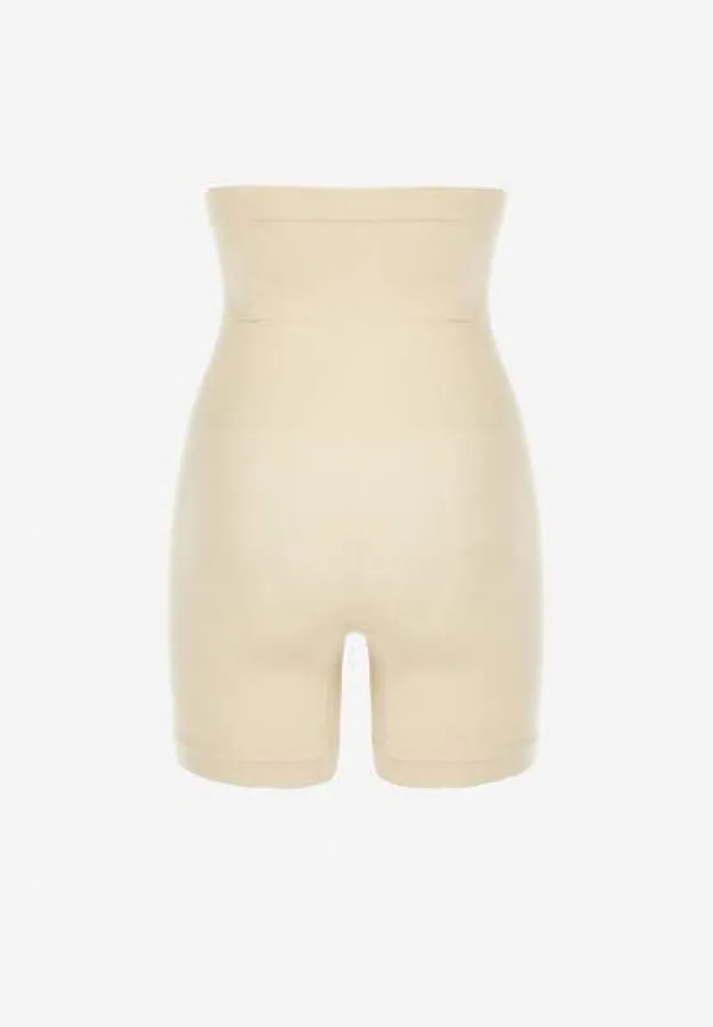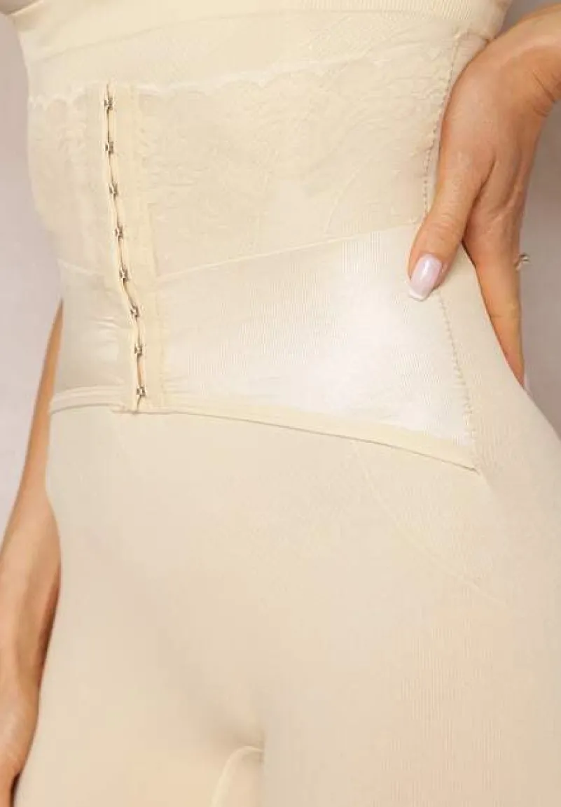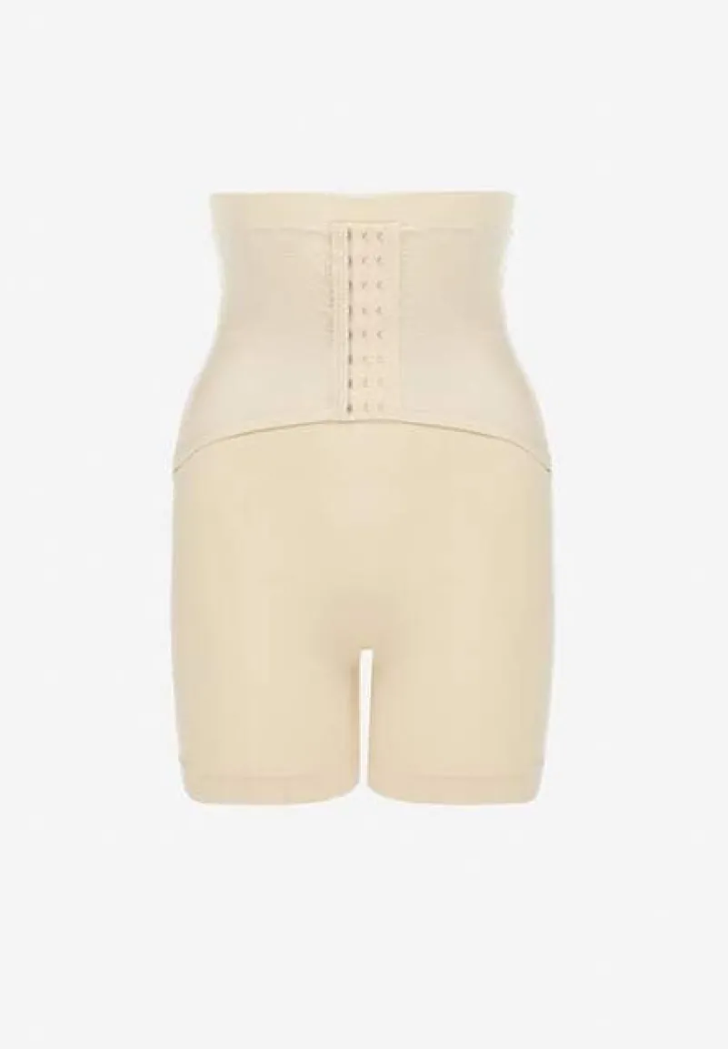 Beżowe Modelujące Majtki z Gorsetowym Zapięciem na Haftki Hefial