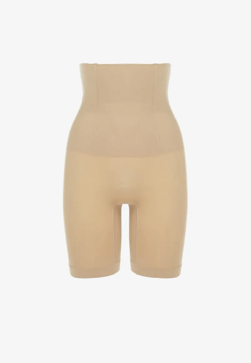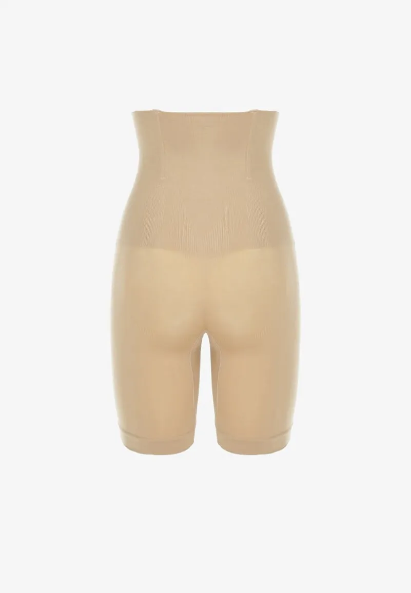 Majtki Asolia o funkcji modelującej, typu szorty. Wykonane z gładkiej i jednolitej tkaniny. Dopasowane do sylwetki, efektownie ją podkreślając. Z wysokim stanem.