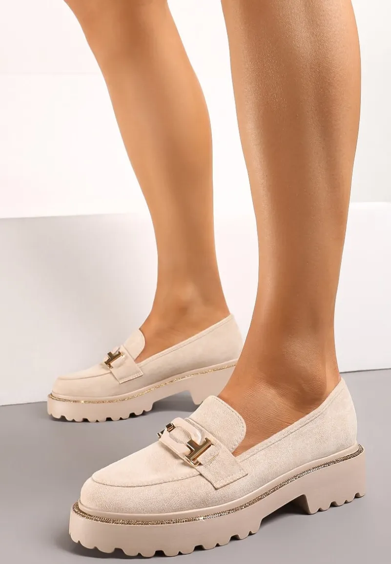 Stawiając na wygodę, nie musisz rezygnować ze stylu – te mokasyny z niską, stabilną platformą są tego najlepszym dowodem. Komfort użytkowania zapewnia miękka wkładka, która sprawdzi się nawet podczas długiego dnia. Ich charakter podkreśla modny, zaokrąglony nosek, a metaliczna klamra w połączeniu z subtelnymi cyrkoniami dodaje im nutę ekstrawagancji.