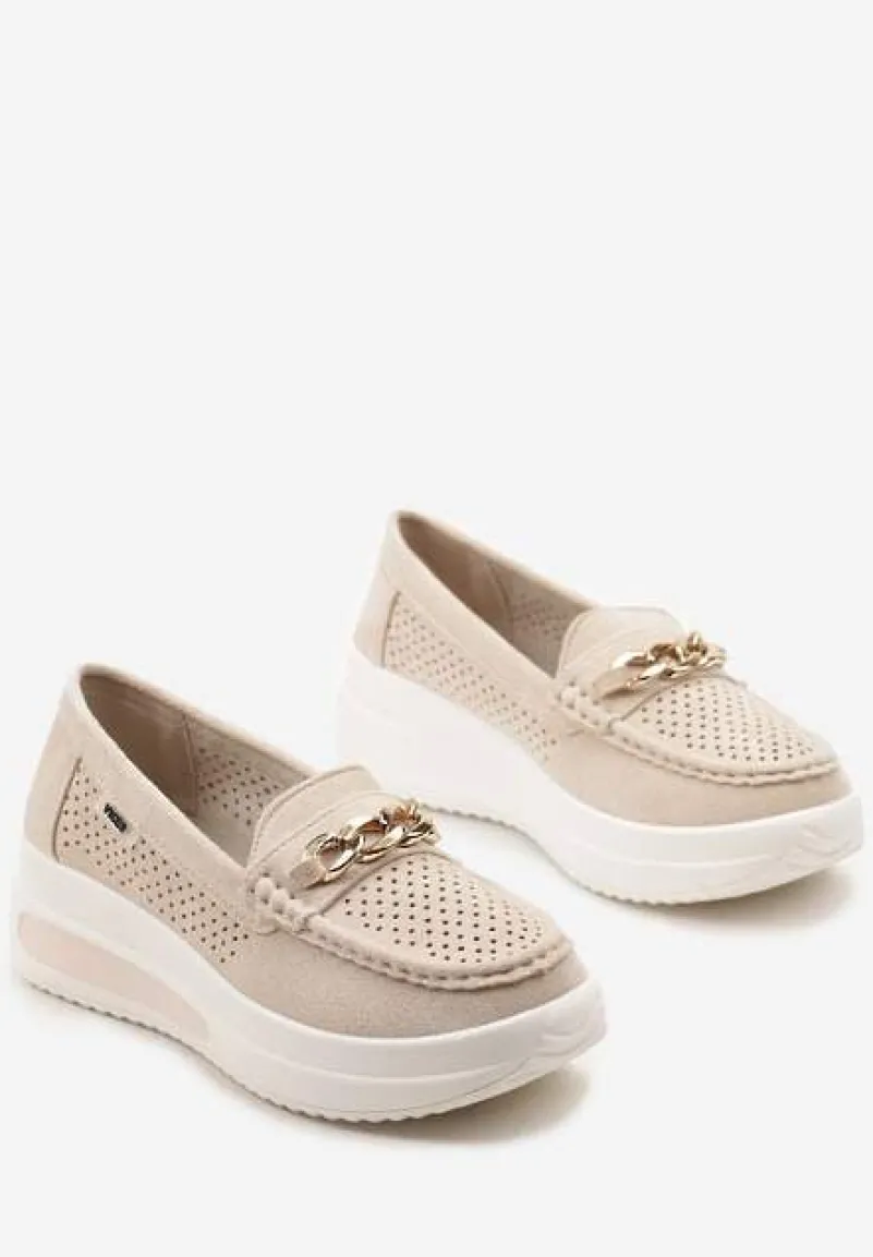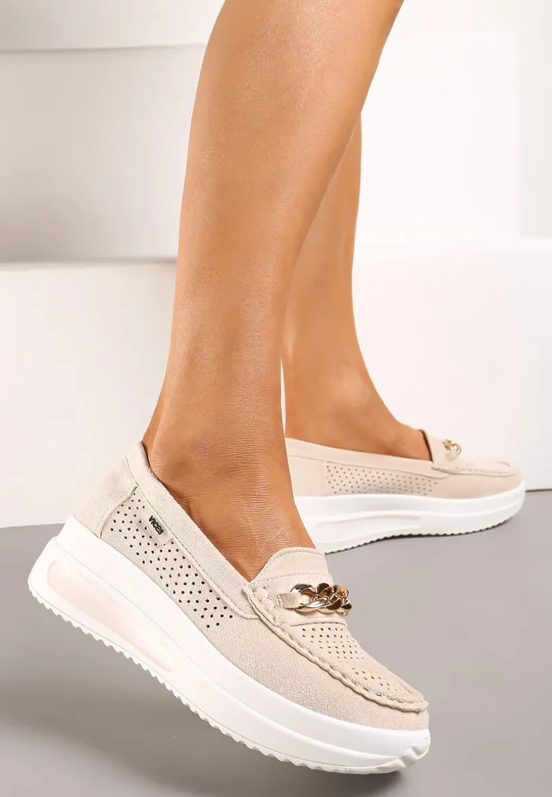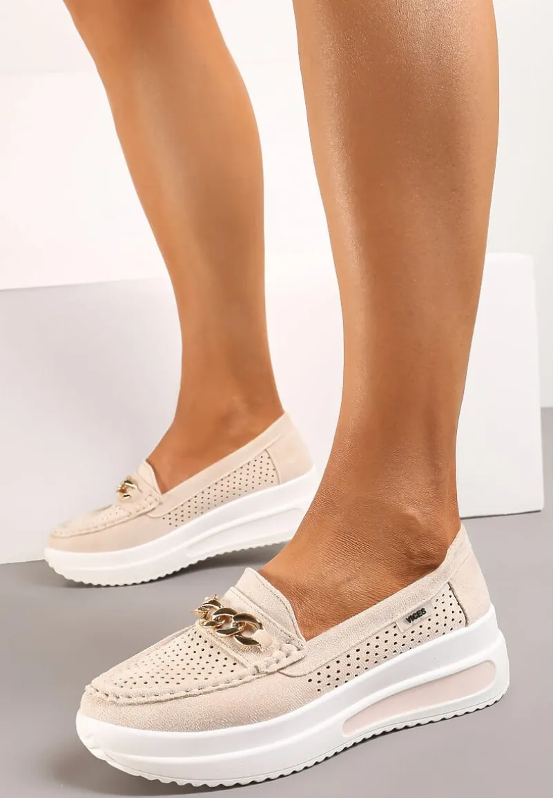 Mokasyny Himenna to kwintesencja stylu dla pewnych siebie kobiet, które pragną wygody bez rezygnacji z najnowszych trendów. Platforma dodaje kilka centymetrów wzrostu, zachowując przy tym stabilność kroku, a miękka wkładka gwarantuje komfort na każdym kroku. Zaokrąglony nosek i bezproblemowe wsuwanie stóp to praktyczne rozwiązania, cenione przez miłośniczki miejskiego szyku.