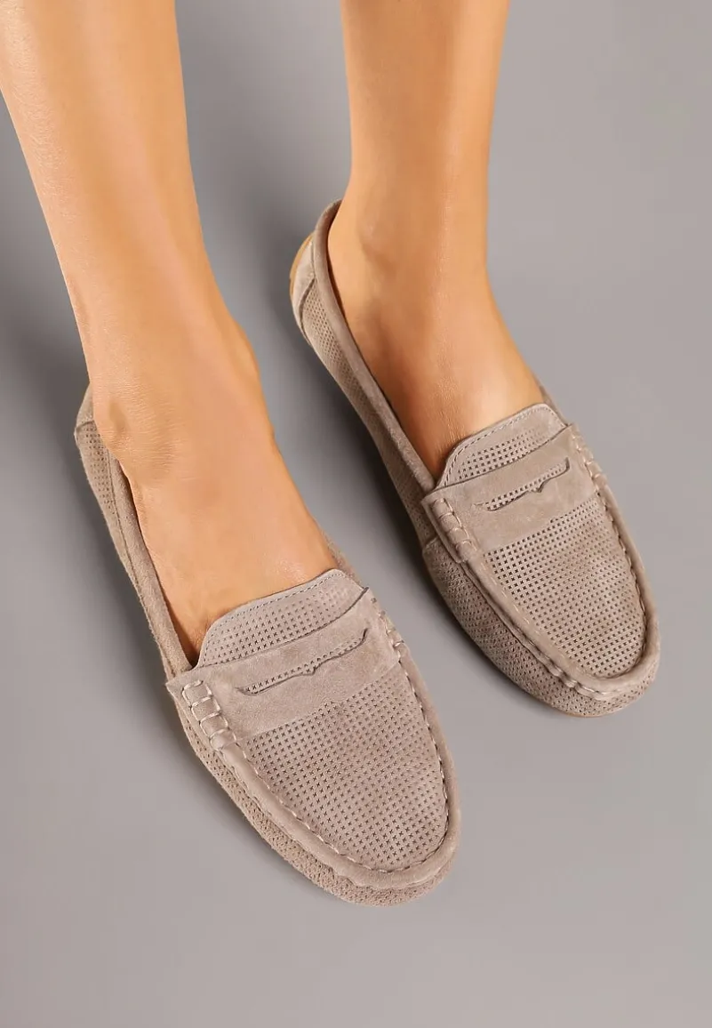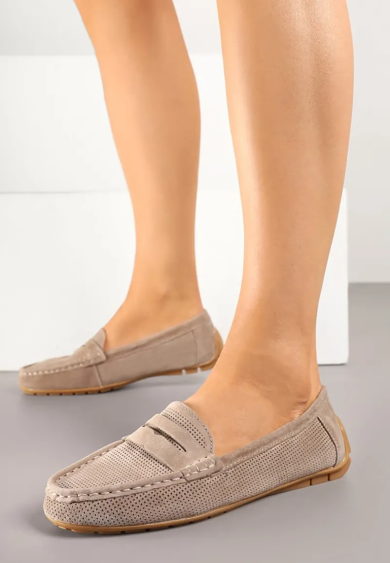 Mokasyny ze Skóry Naturalnej Zdobione Perforacją Revaya to idealny wybór dla kobiet, które pragną podkreślić swój styl i pewność siebie w każdej sytuacji. Te eleganckie buty na płaskim obcasie doskonale sprawdzą się na co dzień – zestaw je z luźnymi spodniami i oversize’ową koszulą, a stworzysz modny look, który przyciągnie spojrzenia! Przy formalnych okazjach dodaj do nich elegancką sukienkę i kopertówkę, a zyskasz ponadczasową stylizację z klasą. Zdobienia w postaci perforacji nadają im unikalnego charakteru. Musisz je mieć!
