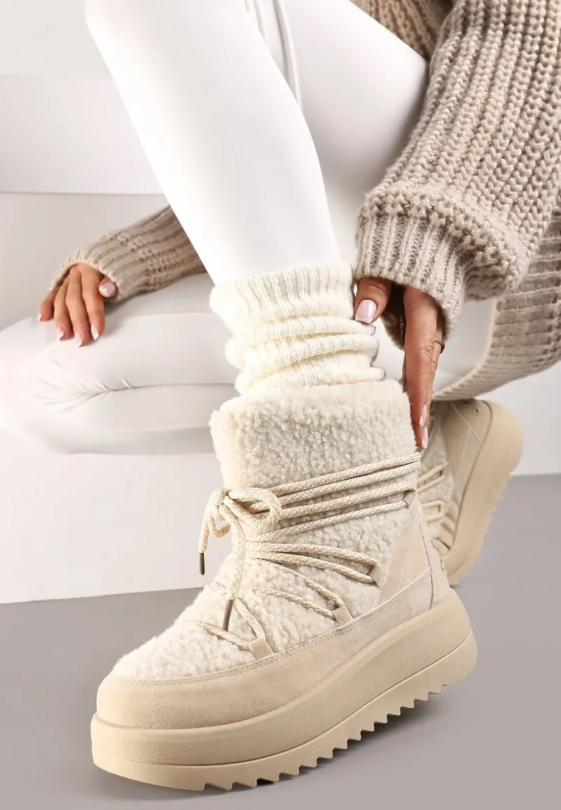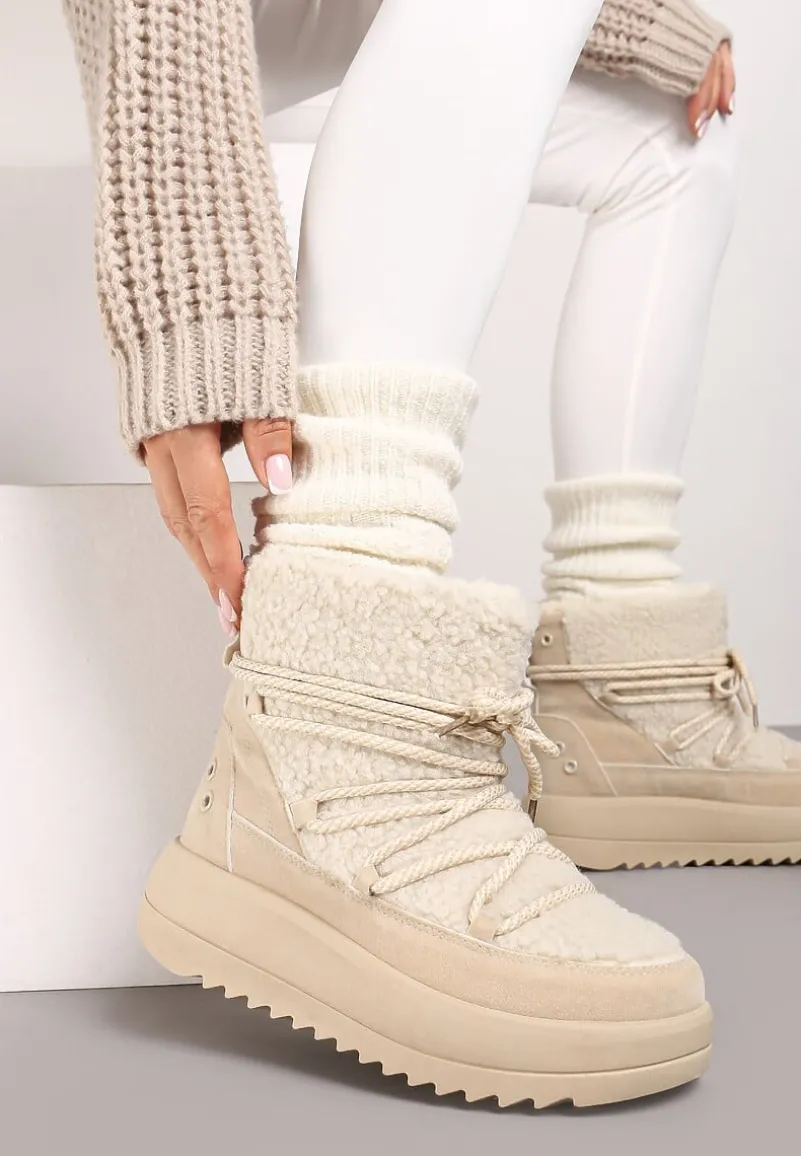 Odkryj zimową nonszalancję z wsuwanymi śniegowcami Avalisande! Urzekające platformą, będą gwarancją stabilności na śliskich chodnikach. Subtelne sznurowanie dodaje butom charakteru. Zaokrąglony nosek gwarantuje modny design, komponujący się z luźniejszymi stylizacjami. Wykreuj z nimi swój zimowy outfit: połącz z wyrazistymi legginsami i oversizowym swetrem dla codziennego looku, albo zestaw z eleganckim płaszczem i dopasowaną spódnicą – stworzysz stylizację idealną dla śnieżnej miejskiej elegantki.