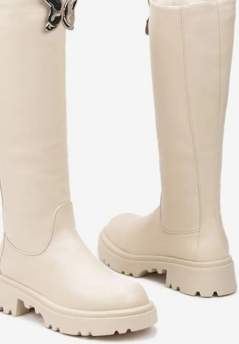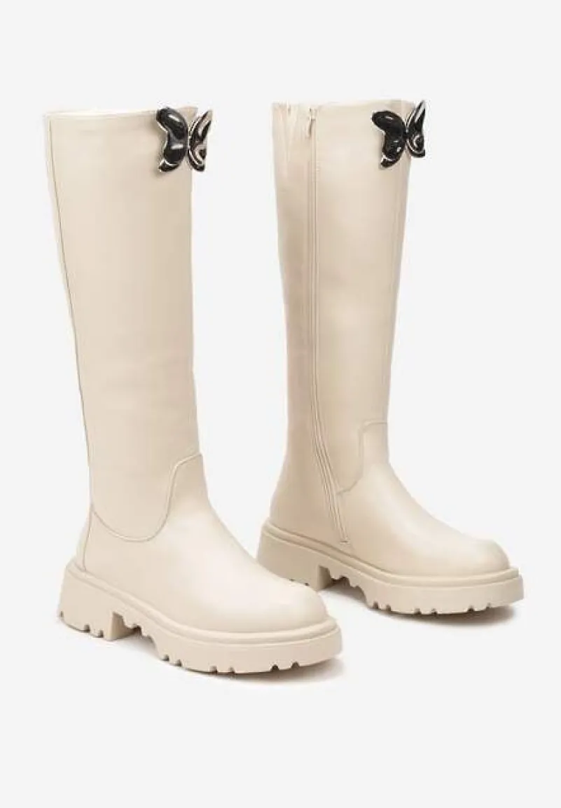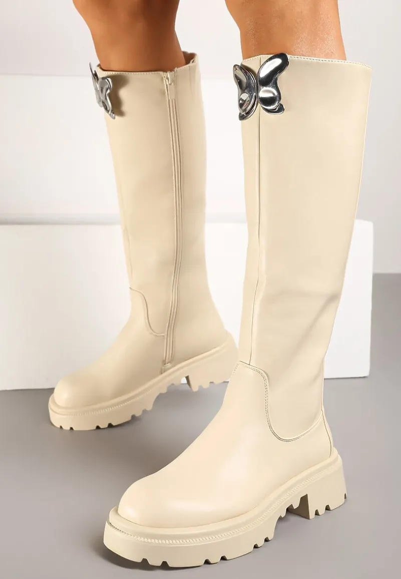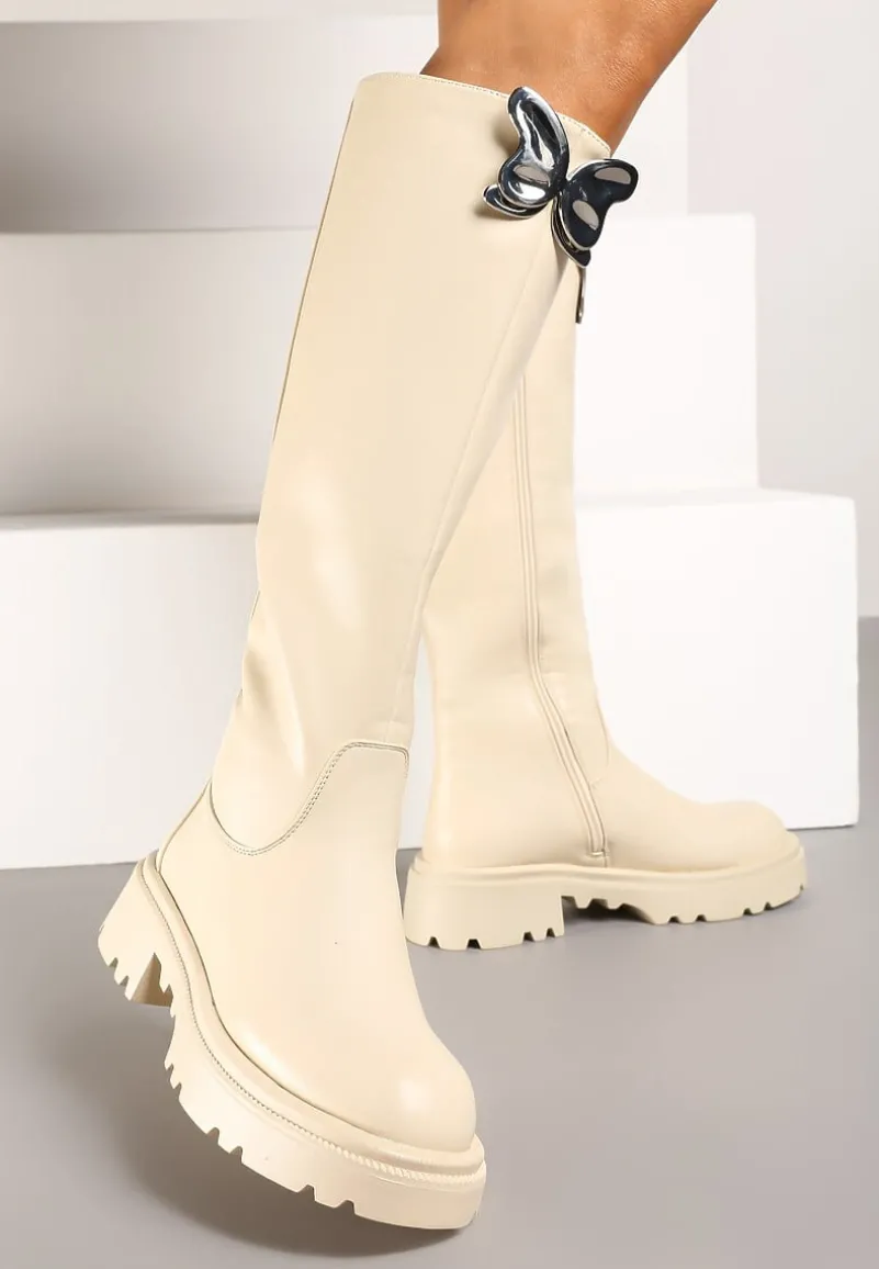 Płaskie Kozaki Ozdobione Motylem 3D Remidra to stylowa odpowiedź na chłodne dni, zachowując modny design – idealne dla pewnych siebie kobiet. Prosty obcas zapewnia stabilność. Zaokrąglony nosek i efektowne zapięcie na suwak podkreślają ich nowoczesny charakter. Noś je zarówno na codzienne spacery, jak i podczas weekendowych wypadów – wyglądają świetnie z długim swetrem i jeansami, a na wieczór wystarczy dodać elegancką tunikę i gotowe!