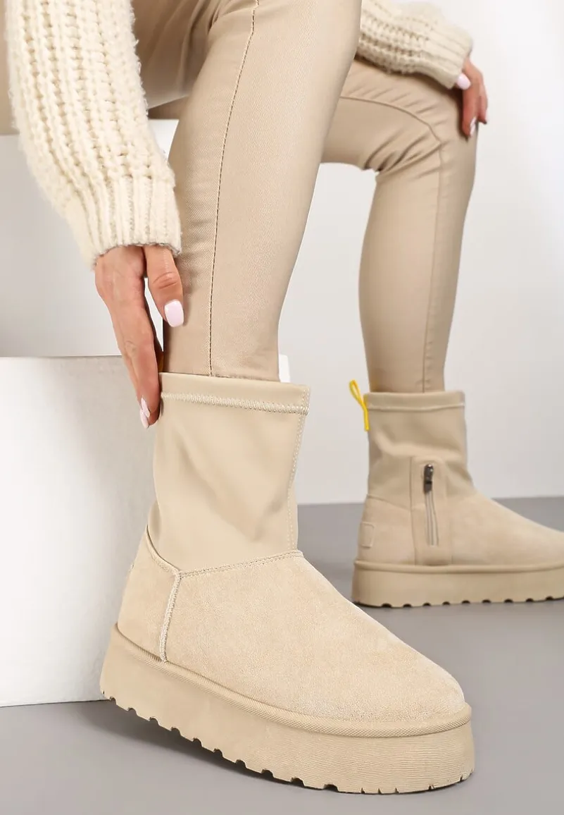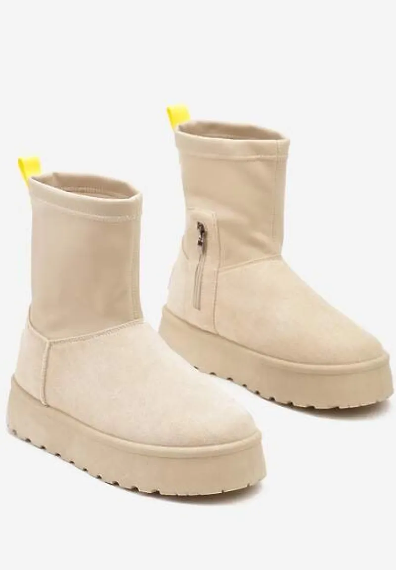 Rozgrzej swoje stopy stylowymi Śniegowcami Sevidia na suwaki- idealnym wyborem na chłodne dni! Wysoka, elastyczna cholewka świetnie dostosowuje się do nogi, a płaski obcas zapewnia stabilność podczas zimowych spacerów. Te śniegowce to doskonały kompan do miejskich stylizacji: połącz je z oversize’owym swetrem i woskowanymi rurkami dla casualowego look’u lub zestaw z eleganckim płaszczem i wełnianą czapką na bardziej formalne okazje. Zaprojektowane z dbałością o każdy detal, byś mogła wyrazić swój charakter i modowy zmysł.