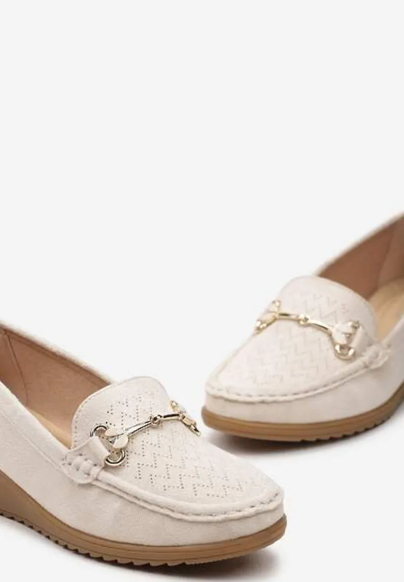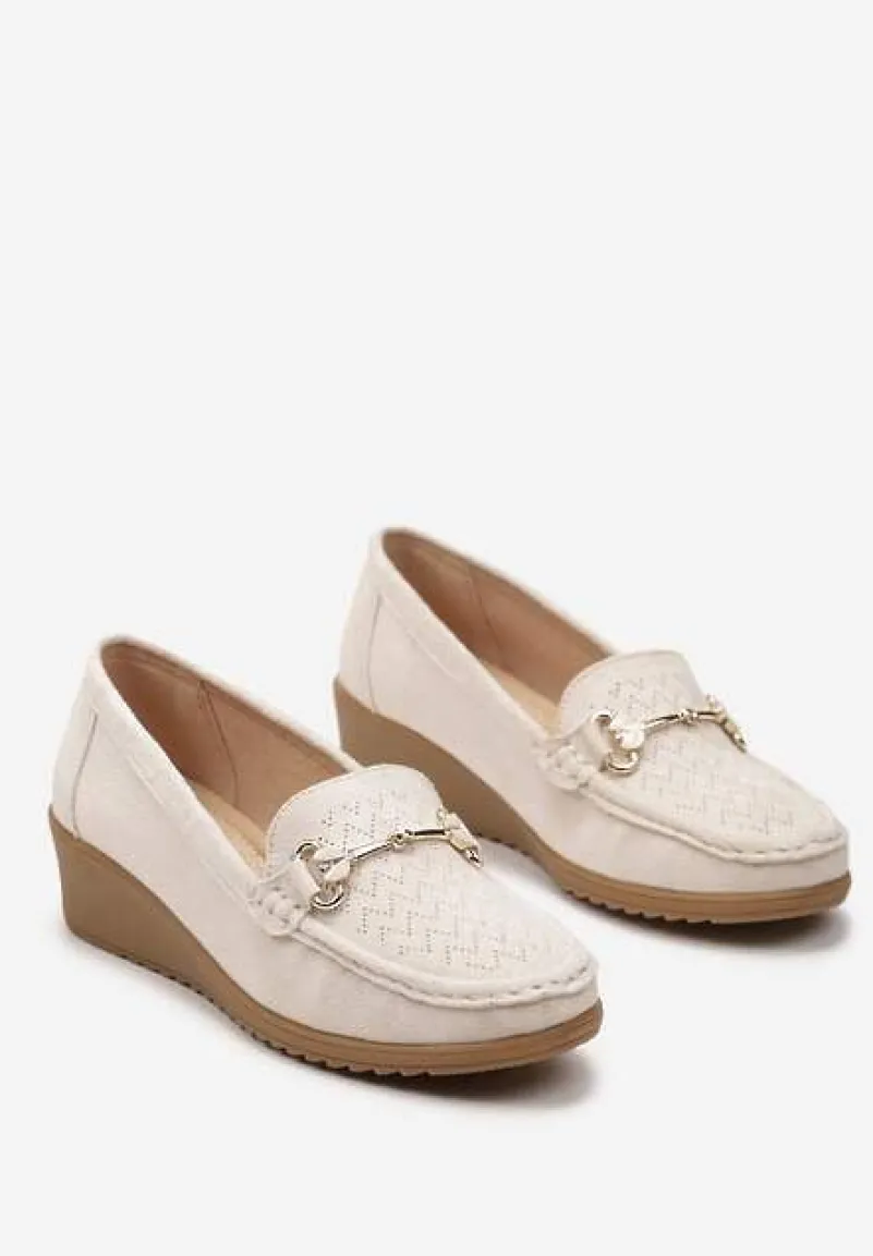 Półbuty Tirensa na koturnie w stylu mokasynów, sprawdzą się nie tylko w formalnych stylizacjach, ale również na co dzień. Detal w postaci metalowej klamry dodaje im szyku.