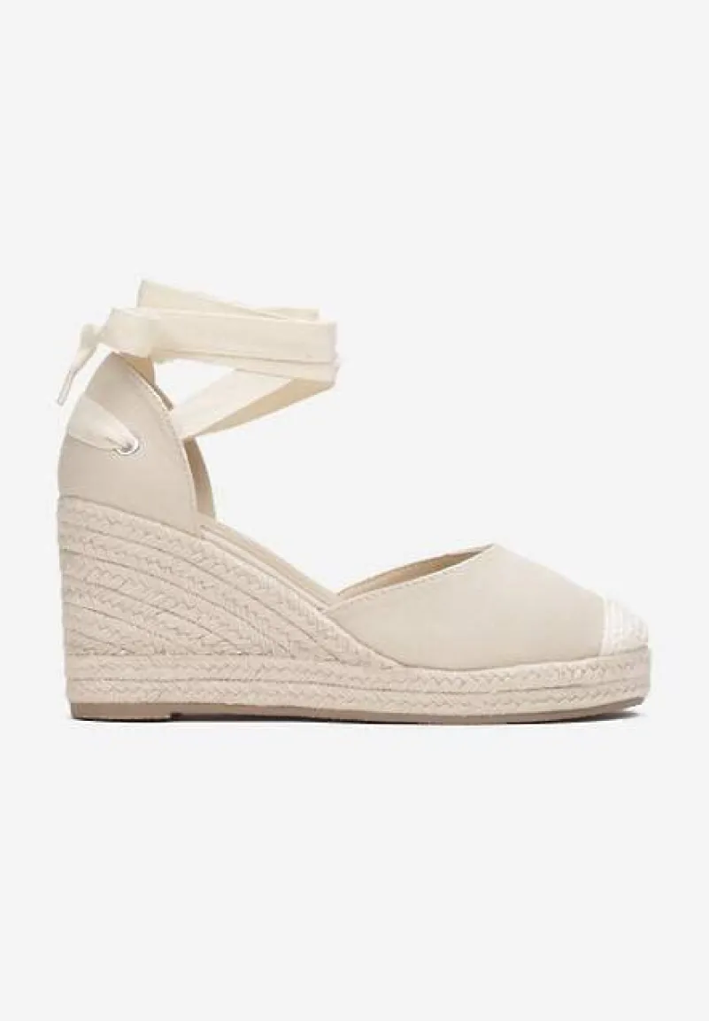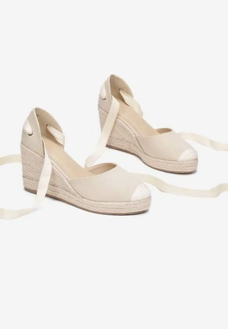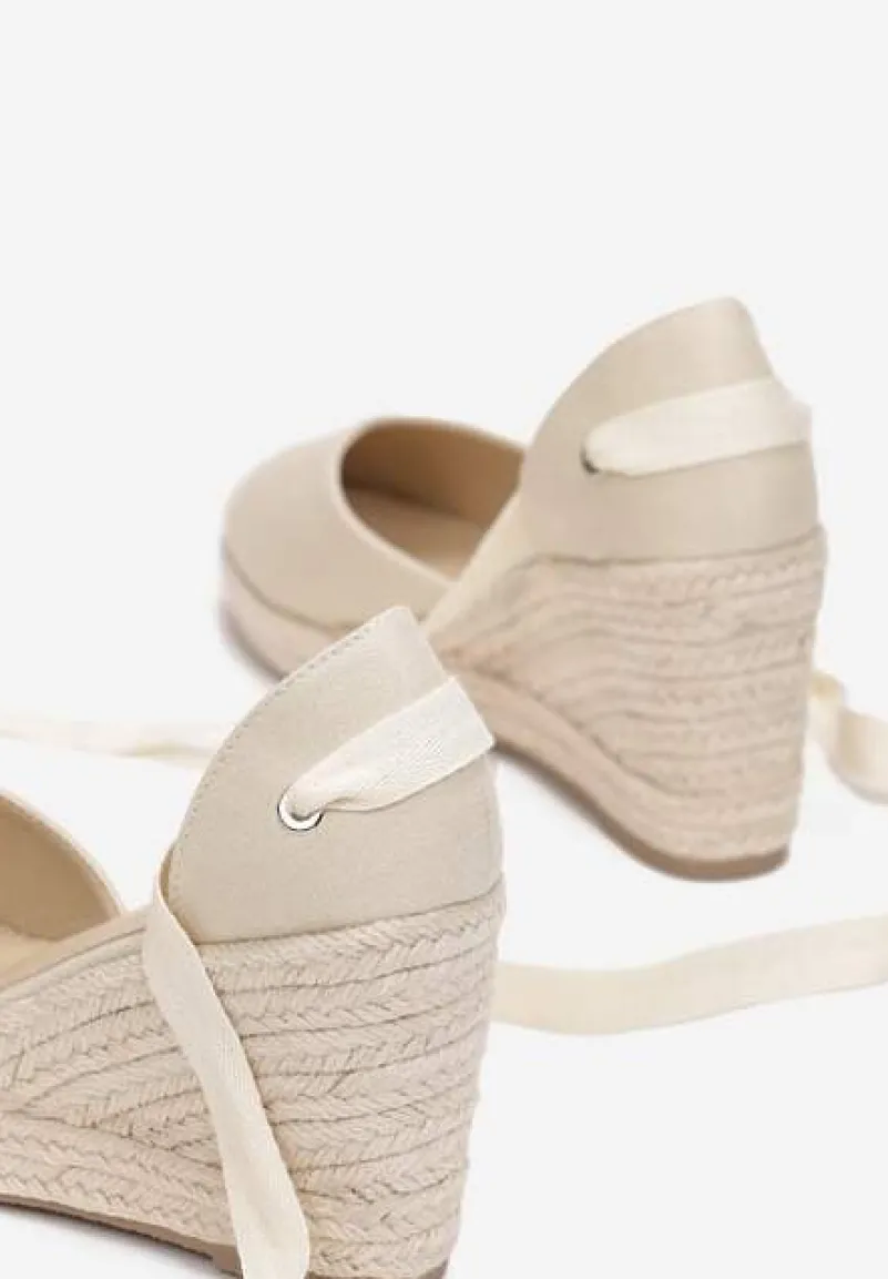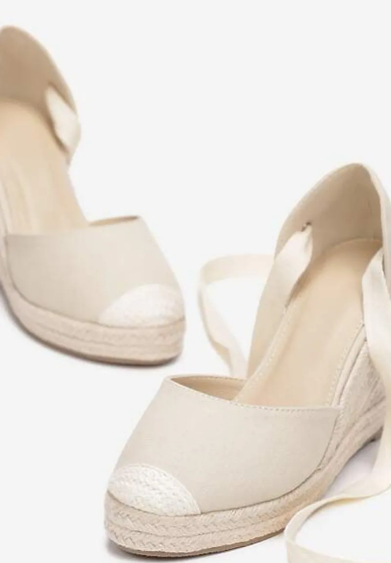 Sandały Acalea na koturnie i niskiej platformie. Fason espadryli, z jutową plecionką na bokach podeszwy i nosku. Palce i pięta zakryte. Model wiązany na długi pasek sięgający aż do łydki. Wykonane z materiału tekstylnego. Łączą w sobie kultowy fason i modne wiązanie: sprawdzą się zarówno w stylizacjach basicowych, jak i tych inspirowanych trendami. Wąskie, najlepiej leżą na smukłej stopie. Sugerujemy zakup rozmiaru o 1 większego.