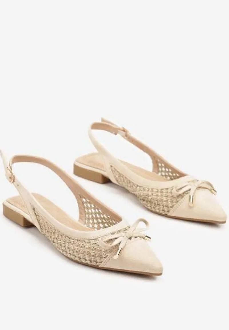 Sandały Balerinki z Plecionki ze Szpiczastym Noskiem i Kokardką Leawenne to esencja stylu i elegancji, idealna dla każdej kobiety, która pragnie być na bieżąco z najnowszymi trendami. Delikatny, pleciony wzór w połączeniu z subtelną kokardką nadaje im lekkości, a płaski obcas zapewnia wygodę i komfort noszenia. Szpiczasty nosek i klasyczne zapięcie na klamerkę przy pasku to detale, które doskonale skomponują się zarówno z letnią sukienką i kapeluszem na co dzień, jak i z eleganckim kombinezonem i kopertówką na wieczorne wyjście. Musisz je mieć!