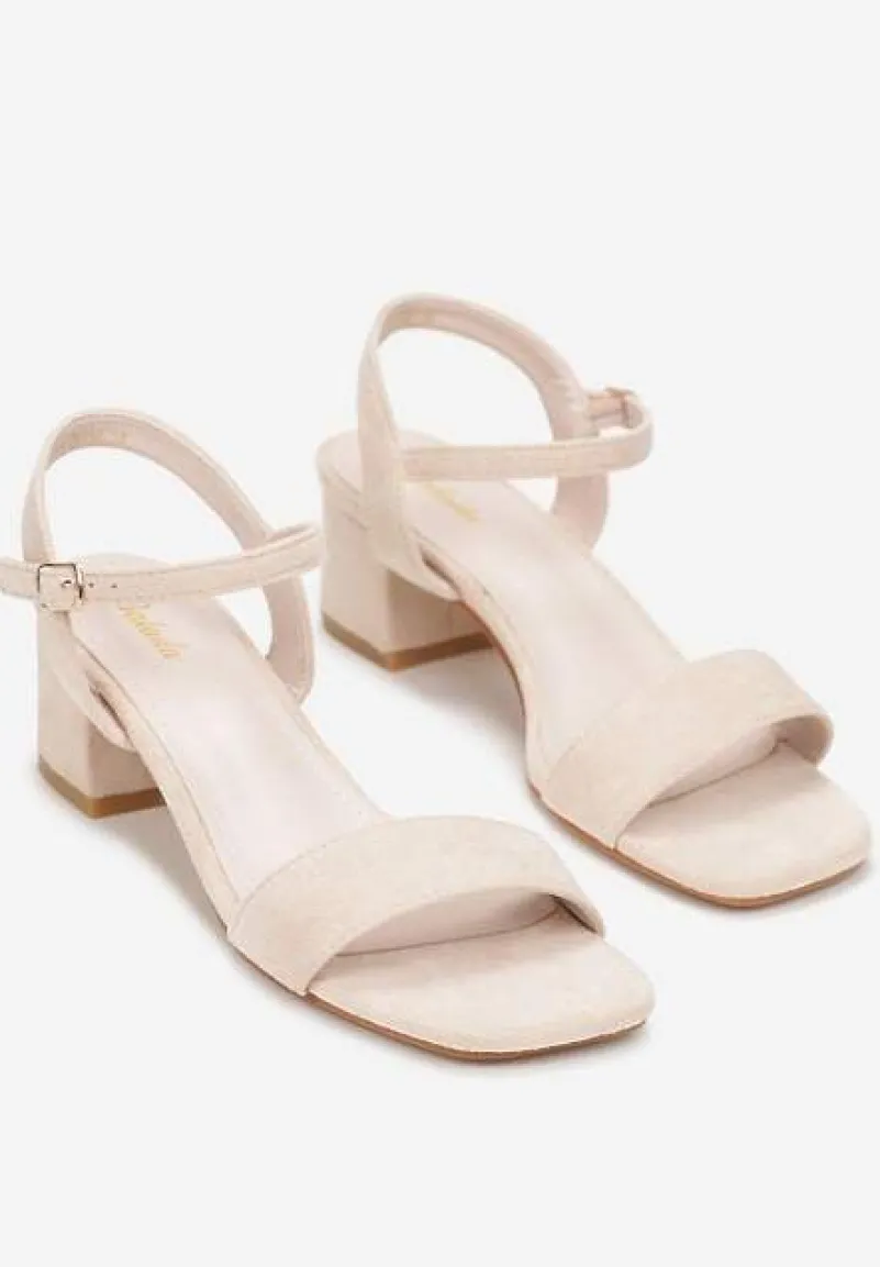 Beżowe Sandały na Niskim Słupkowym Obcasie ze Sprzączką Vosanna