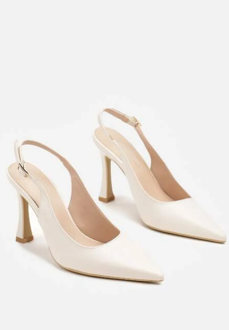 Beżowe Sandały na Obcasie Typu Slingback Dolandra