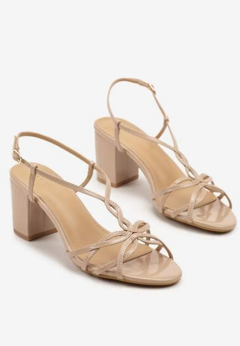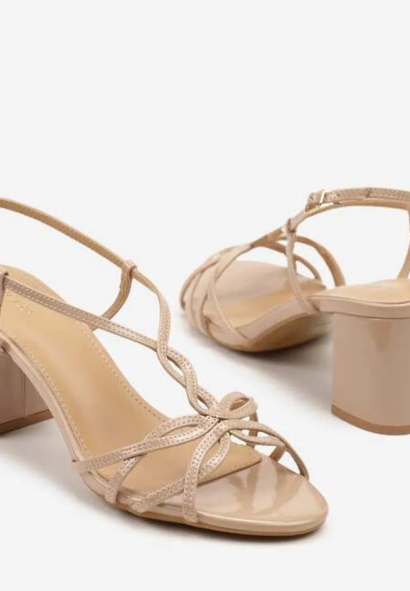Beżowe Sandały na Słupku Vices Ozdobione Paskami Sanello