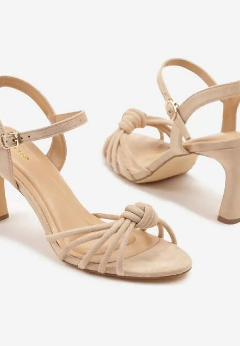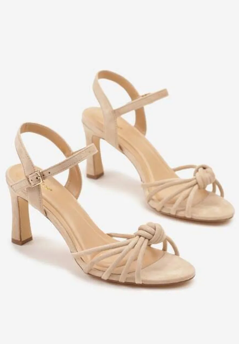 Beżowe Sandały na Słupku Vices Ozdobione Supełkiem Filarina
