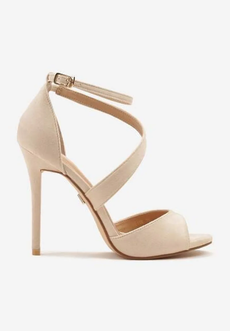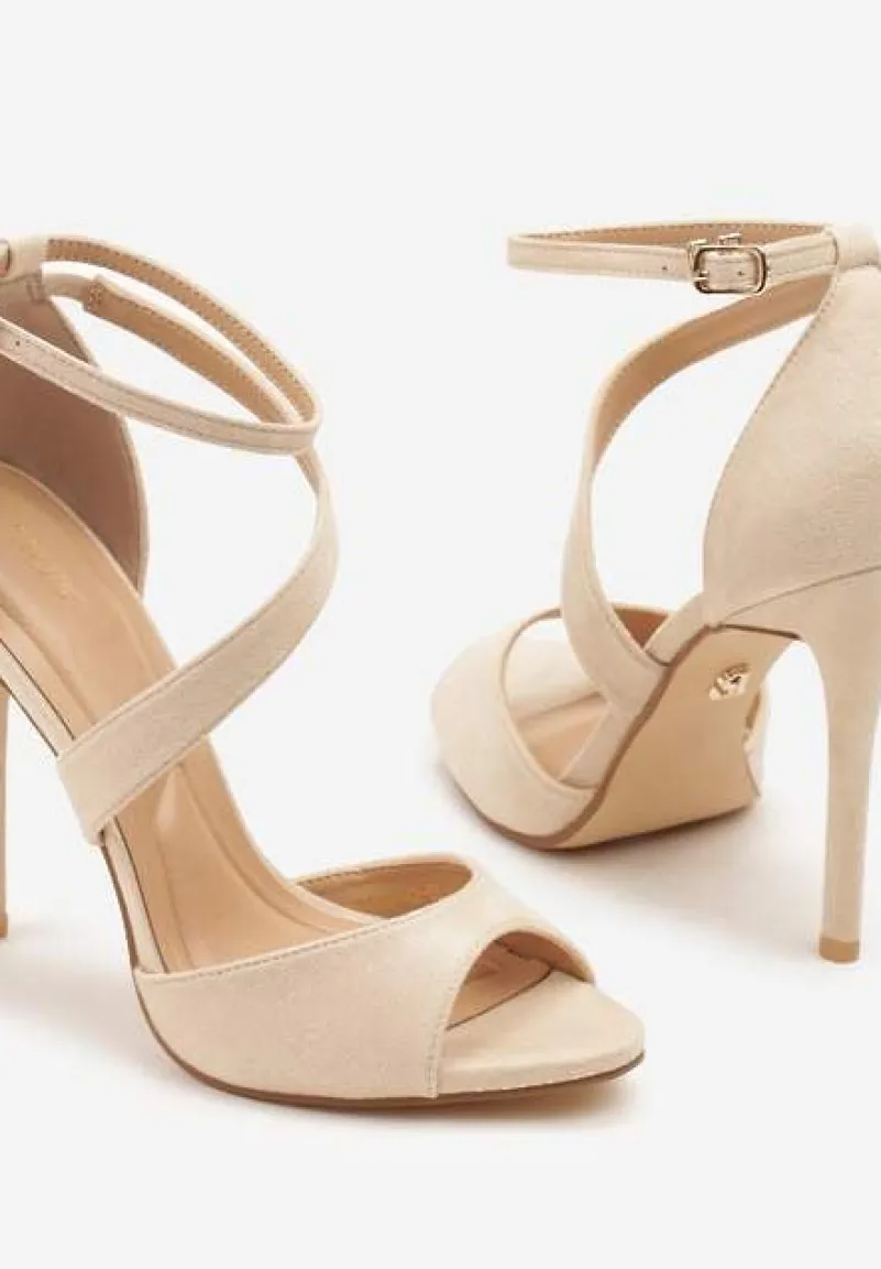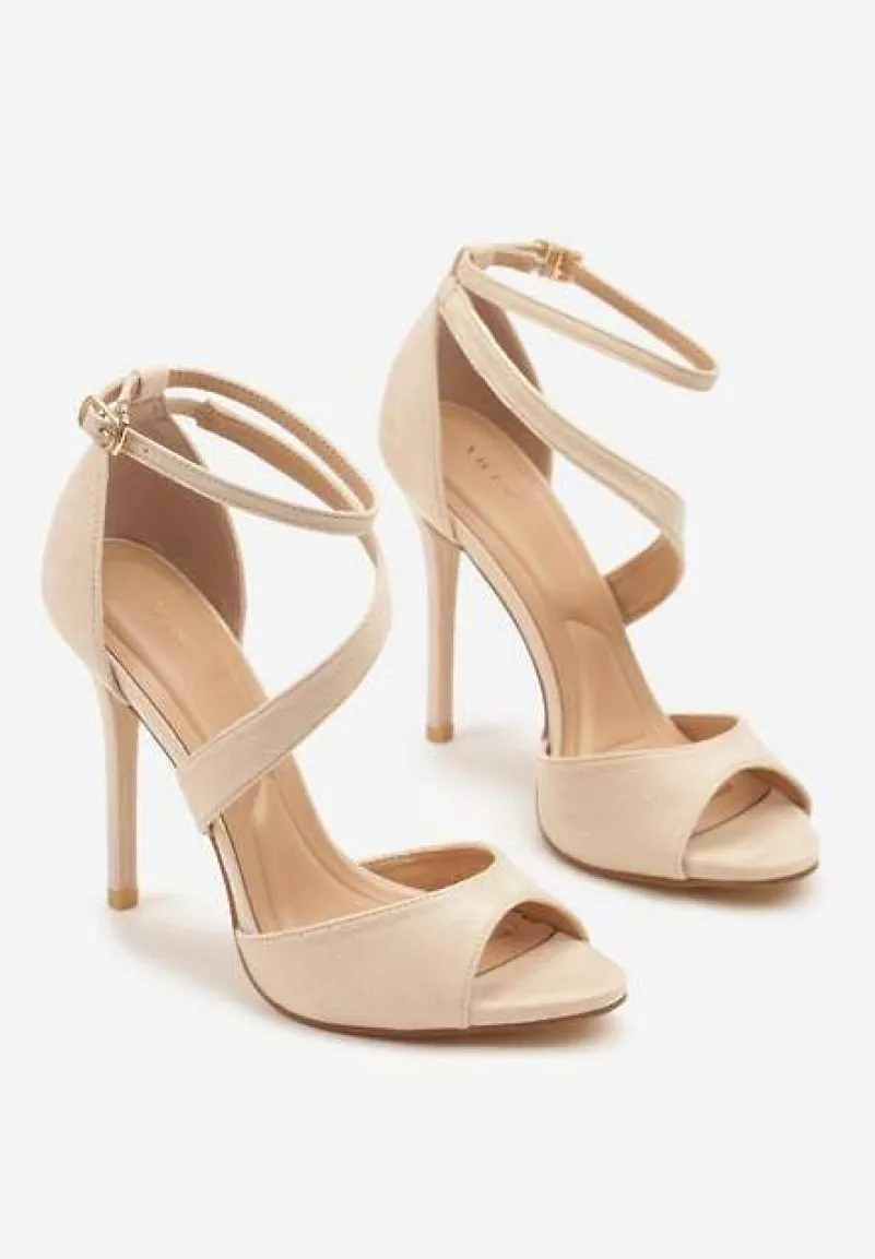 Beżowe Sandały na Szpilce Vices Ozdobione Paskami Sarariae