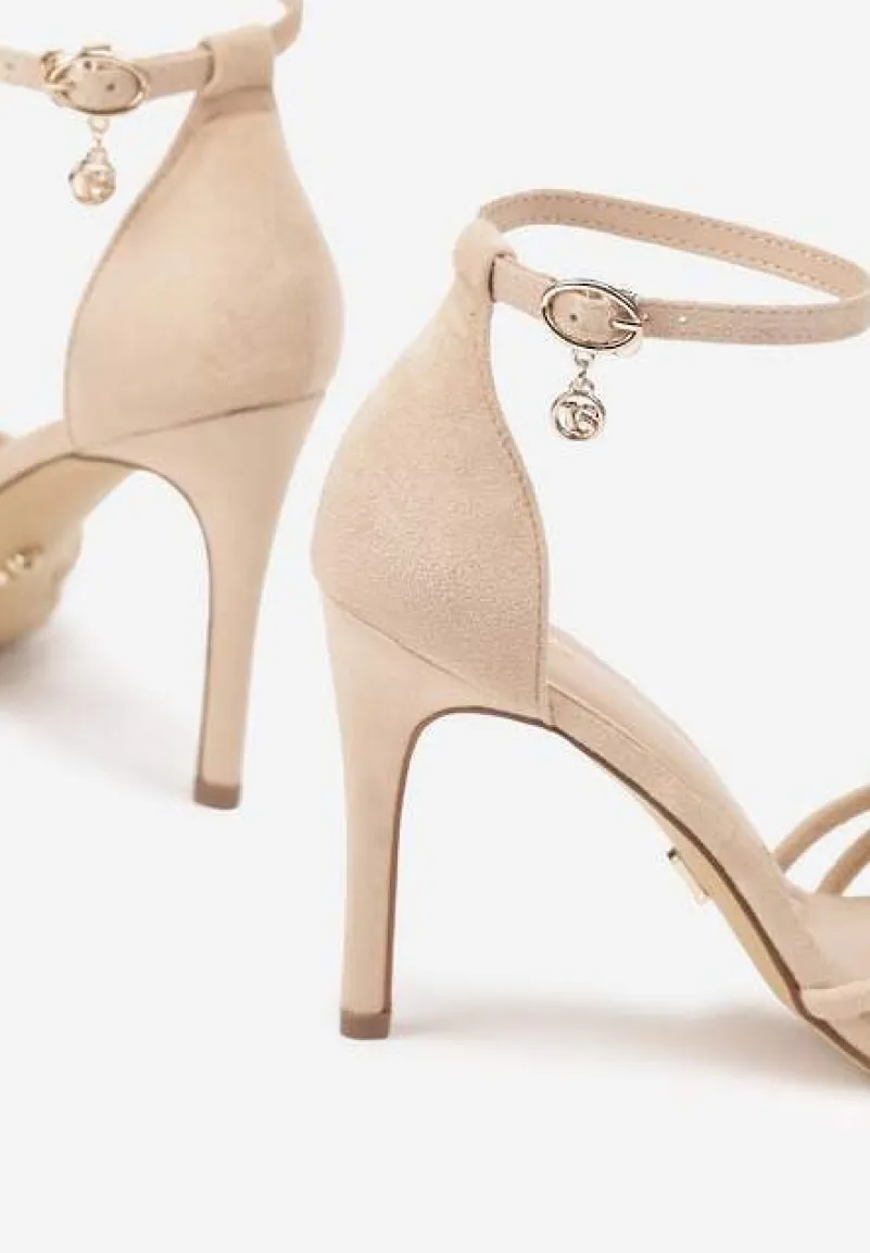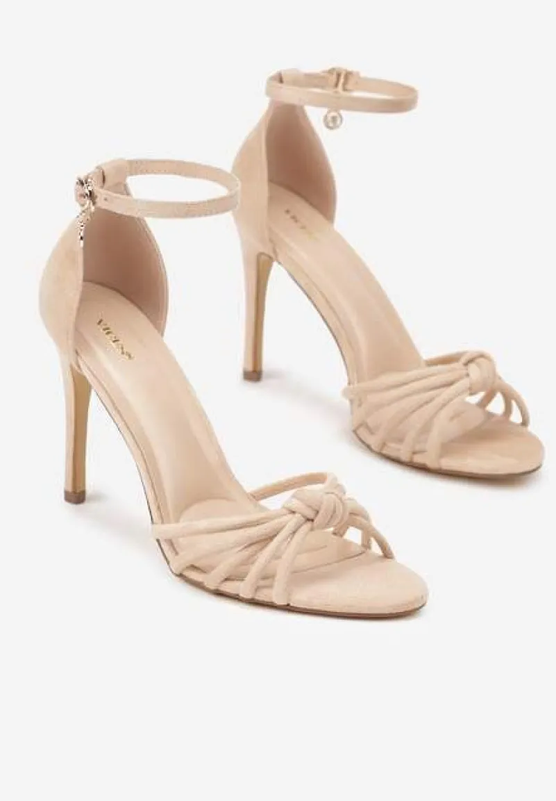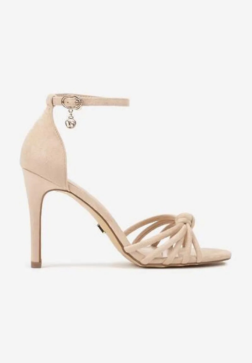 Beżowe Sandały na Szpilce Vices z Ozdobnym Supłem Crinellia
