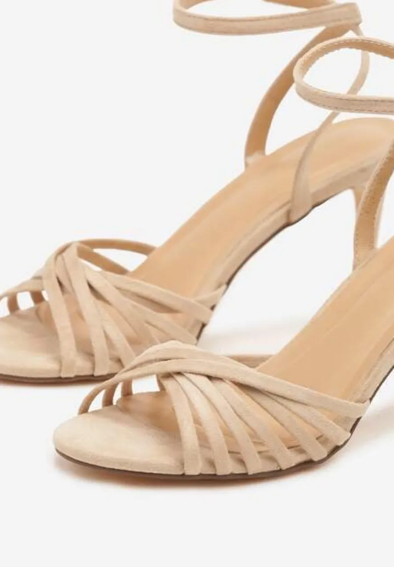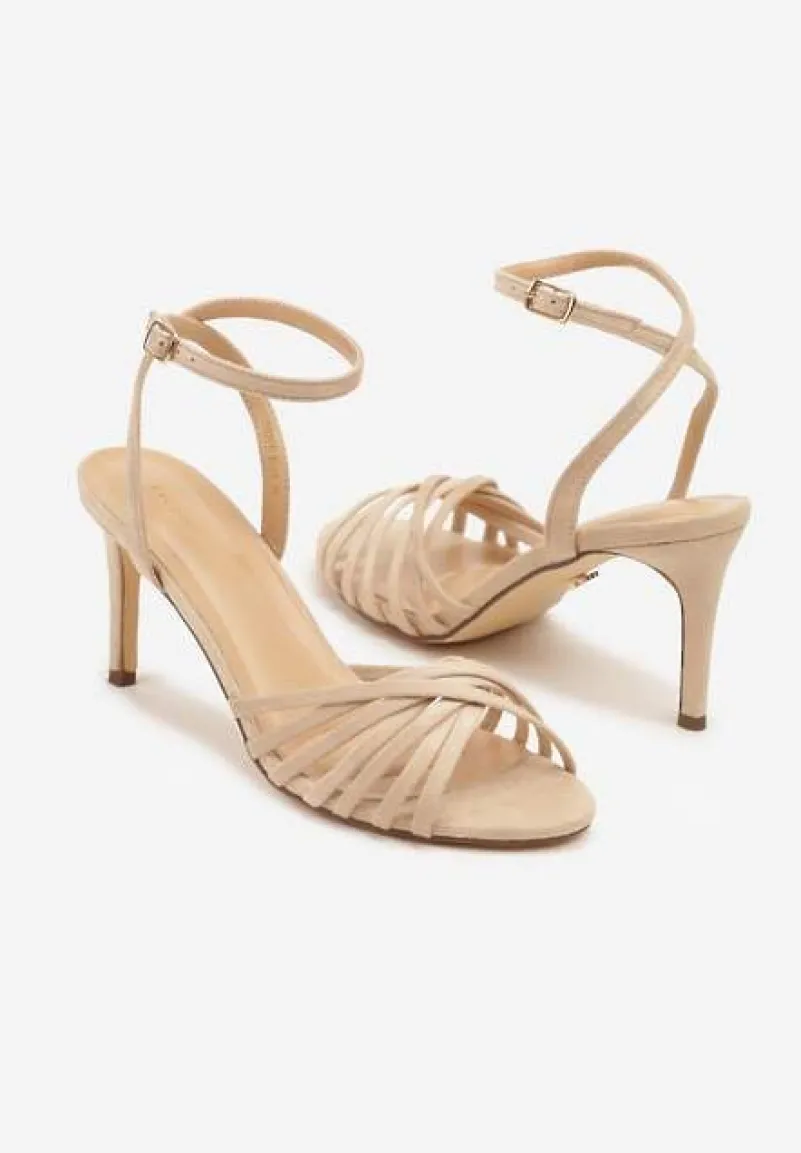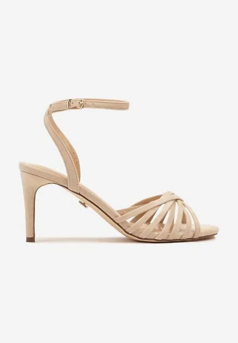Beżowe Sandały Vices na Obcasie Typu Szpilka Folineia