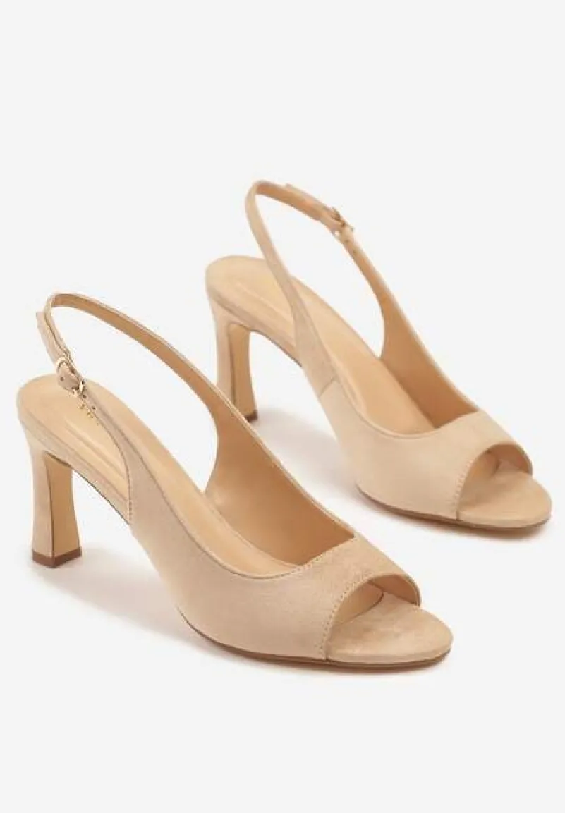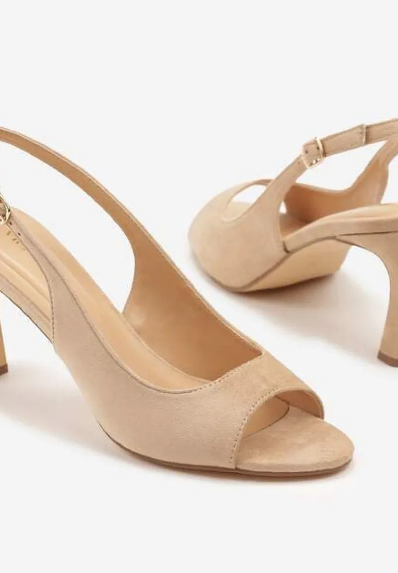 Beżowe Sandały Vices na Szpilce Ozdobione Paskiem Nitelinia