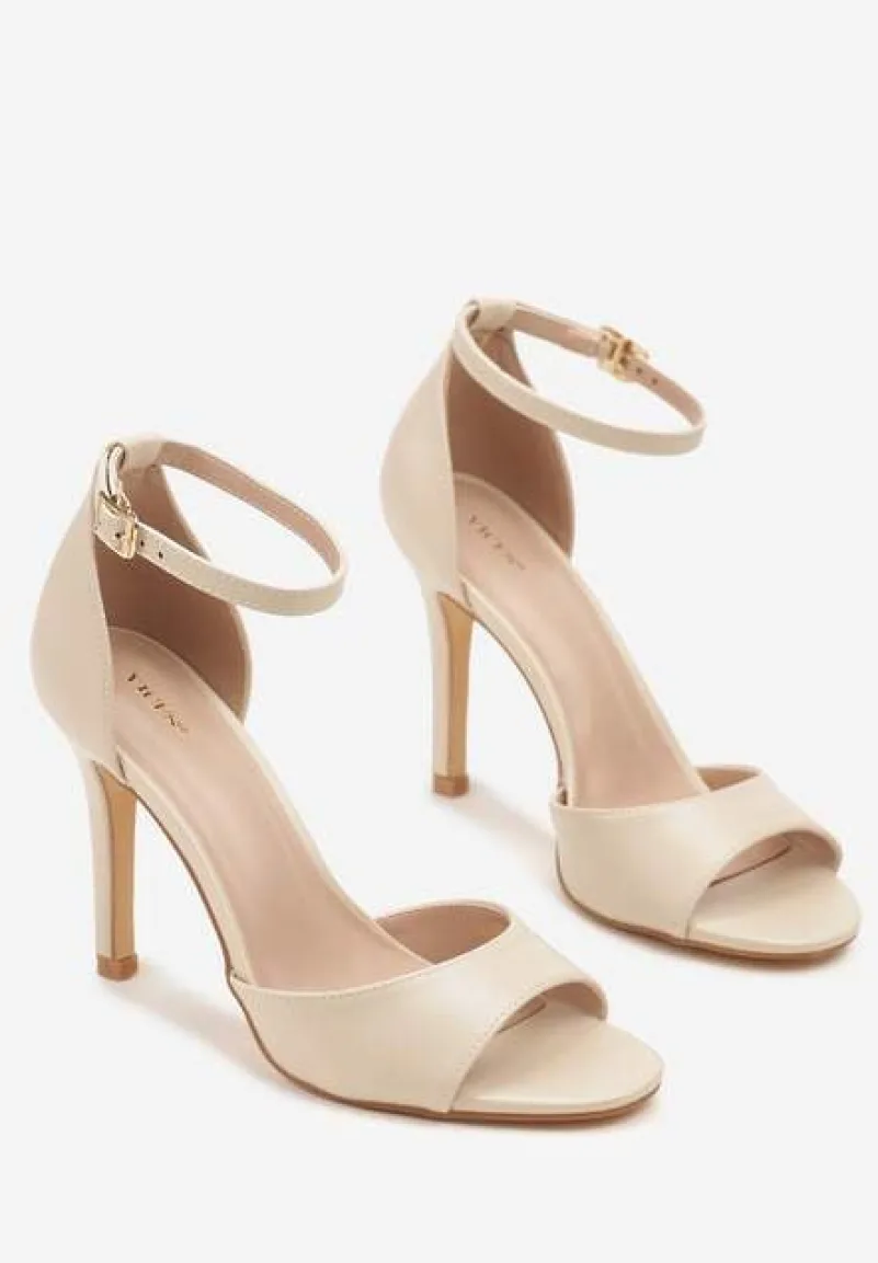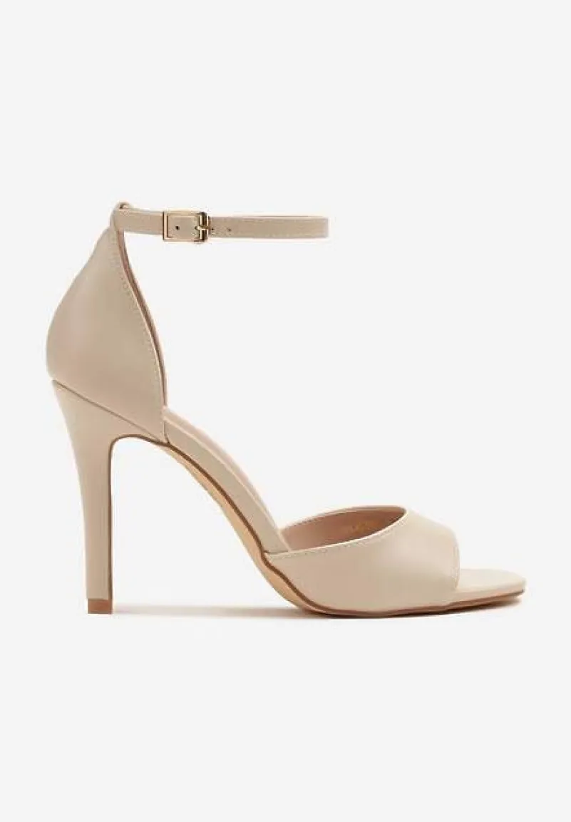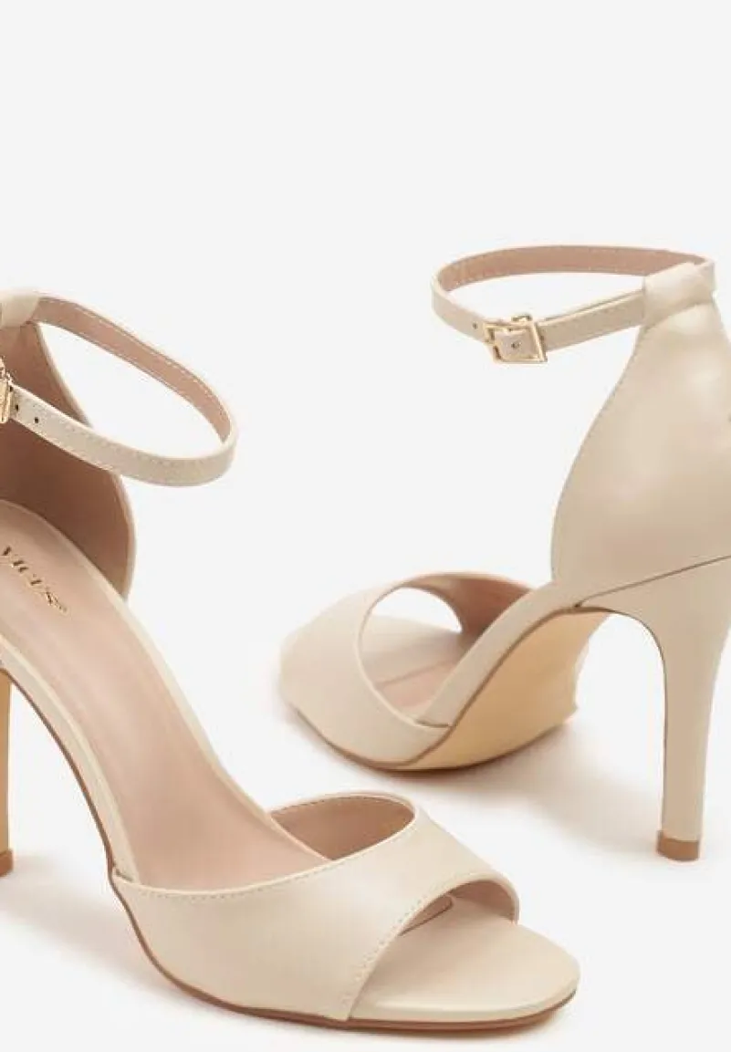 Beżowe Sandały Vices na Szpilce z Okrągłym Noskiem Katoria