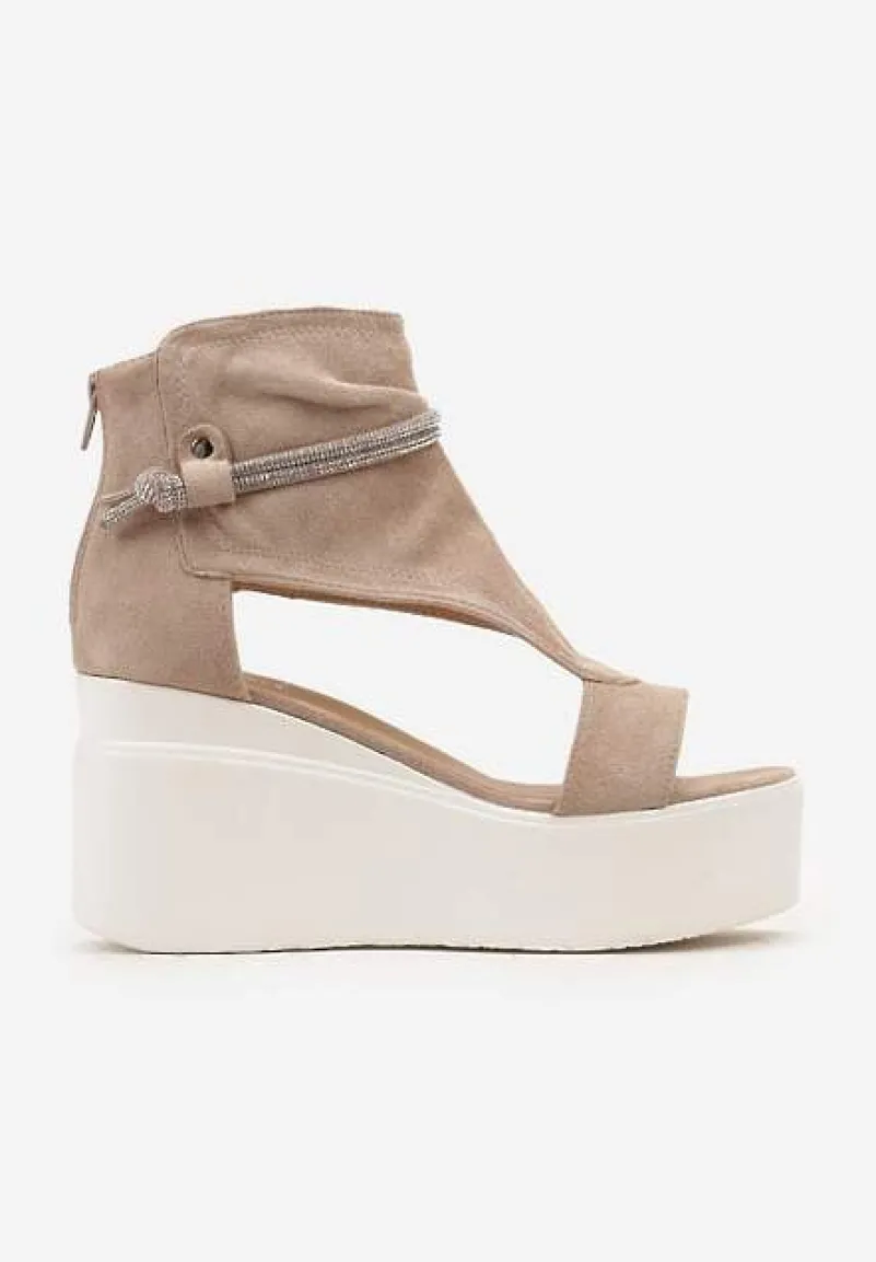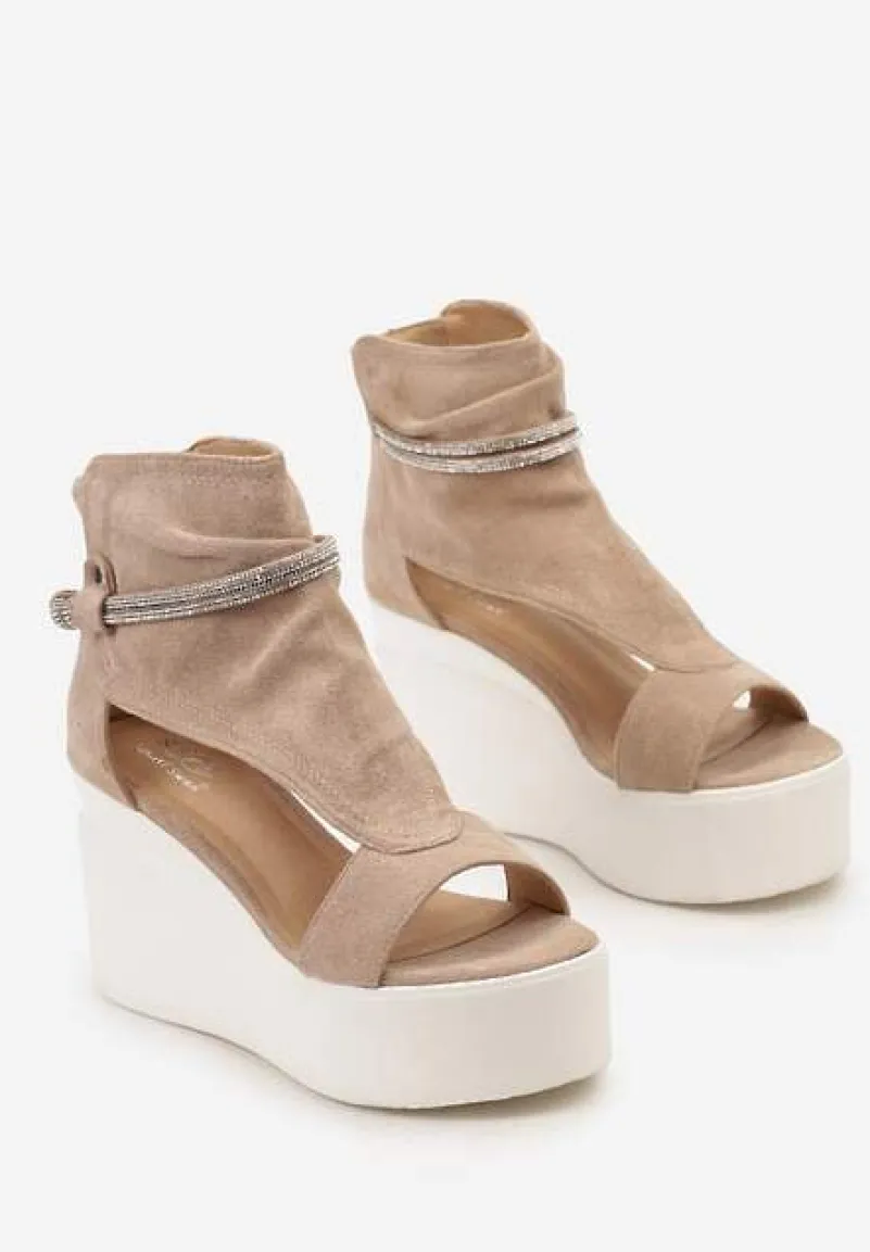 Sandały Gavrela to idealny wybór dla kobiet, które chcą dodać swemu lookowi odrobiny blasku bez rezygnacji z wygody. Podniesienie na solidnej koturnie i platformie zapewnia komfort przy zachowaniu efektownej linii nogi. Zapięcie za kostką gwarantuje stabilizację i ułatwia dopasowanie. Te sandały będą towarzyszyć ci w każdej letniej przygodzie, świetnie skomponują się ze zwiewną sukienką na letni festiwal lub eleganckim kostiumem podczas wieczornego przyjęcia.
