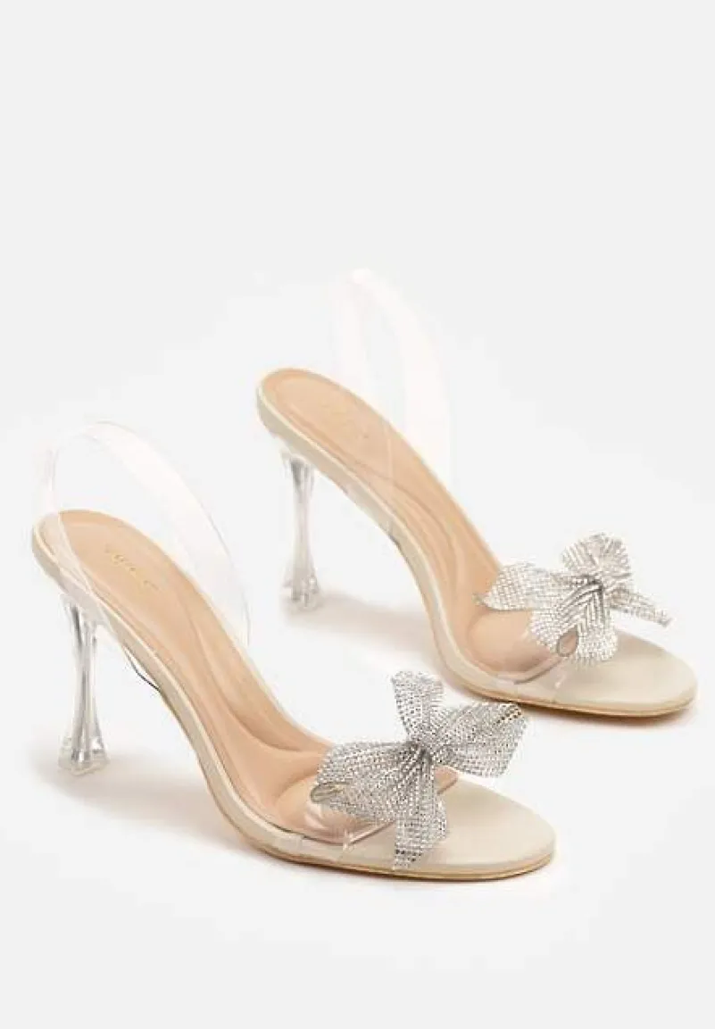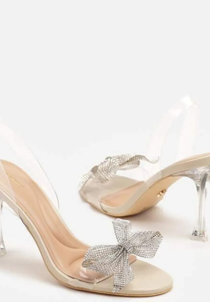 Beżowe Transparentne Sandały na Szpilce Vices Ozdobione Kokardą z Cyrkonii Bolhiris