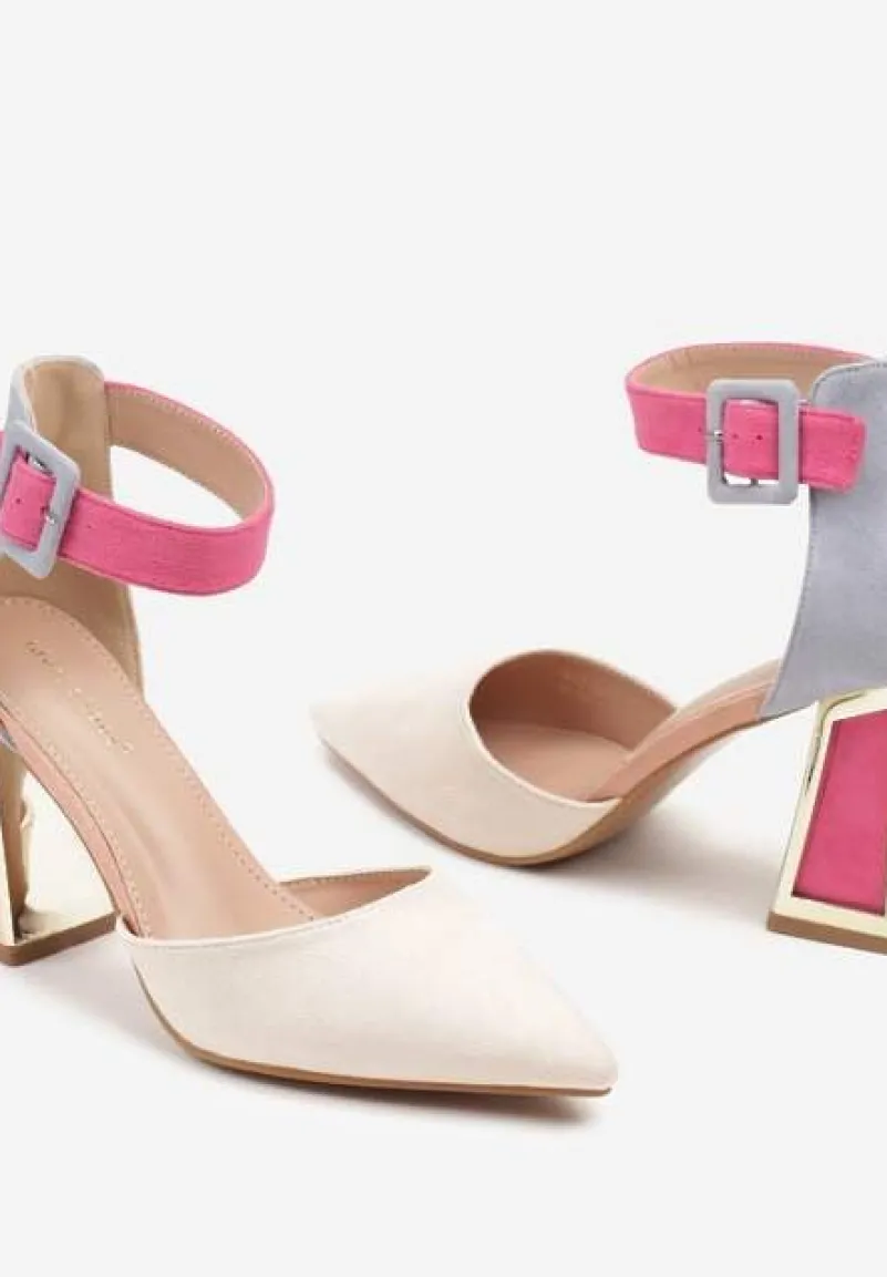 Czółenka Tiliri to połączenie klasyki z odrobiną ekstrawagancji – doskonałe zarówno do biura, jak i na wieczorowe wyjście. Stożkowy obcas gwarantuje stabilność, a ostry nosek buta dodaje charakteru i elegancji. Pasek wokół kostki, zapinany na stylową sprzączkę, staje się modnym akcentem, a metaliczna aplikacja przykuwa wzrok i nadaje blasku. Wyobraź sobie te czółenka w połączeniu z ołówkową spódnicą i jedwabną bluzką do pracy lub z satynowym kombinezonem na romantyczną kolację – w każdej sytuacji będziesz wyglądać oszałamiająco.