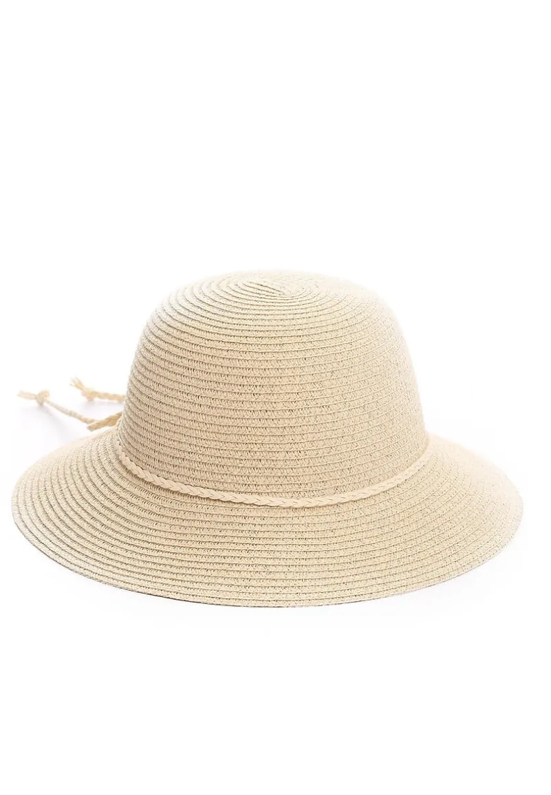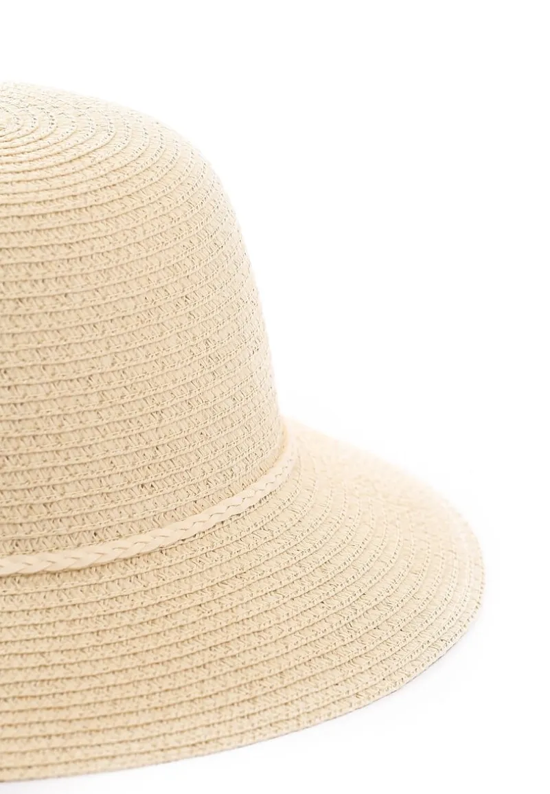 Kapelusz Shoal z szerokim rondem, słomkowy. Wokół ronda dekoracyjny pasek.