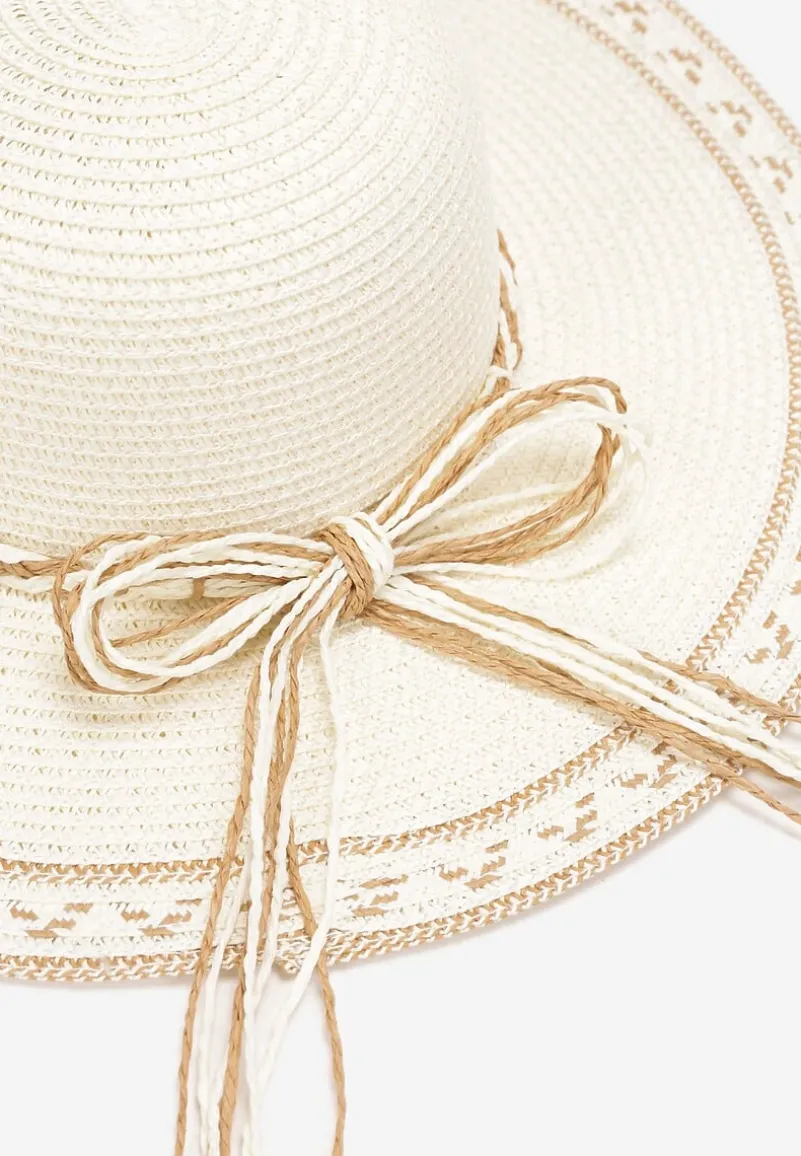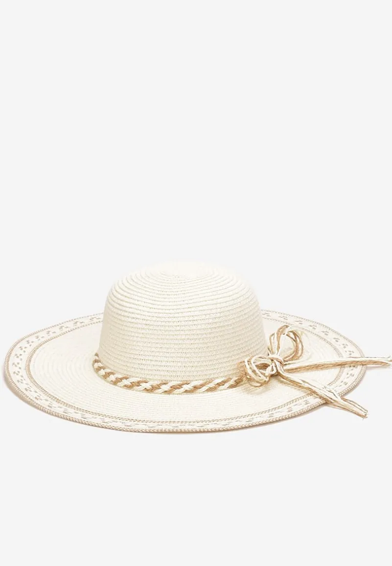 Pleciony kapelusz Zestia z szerokim rondem ozdobionym również plecionym sznurkiem.