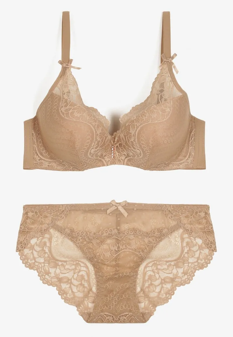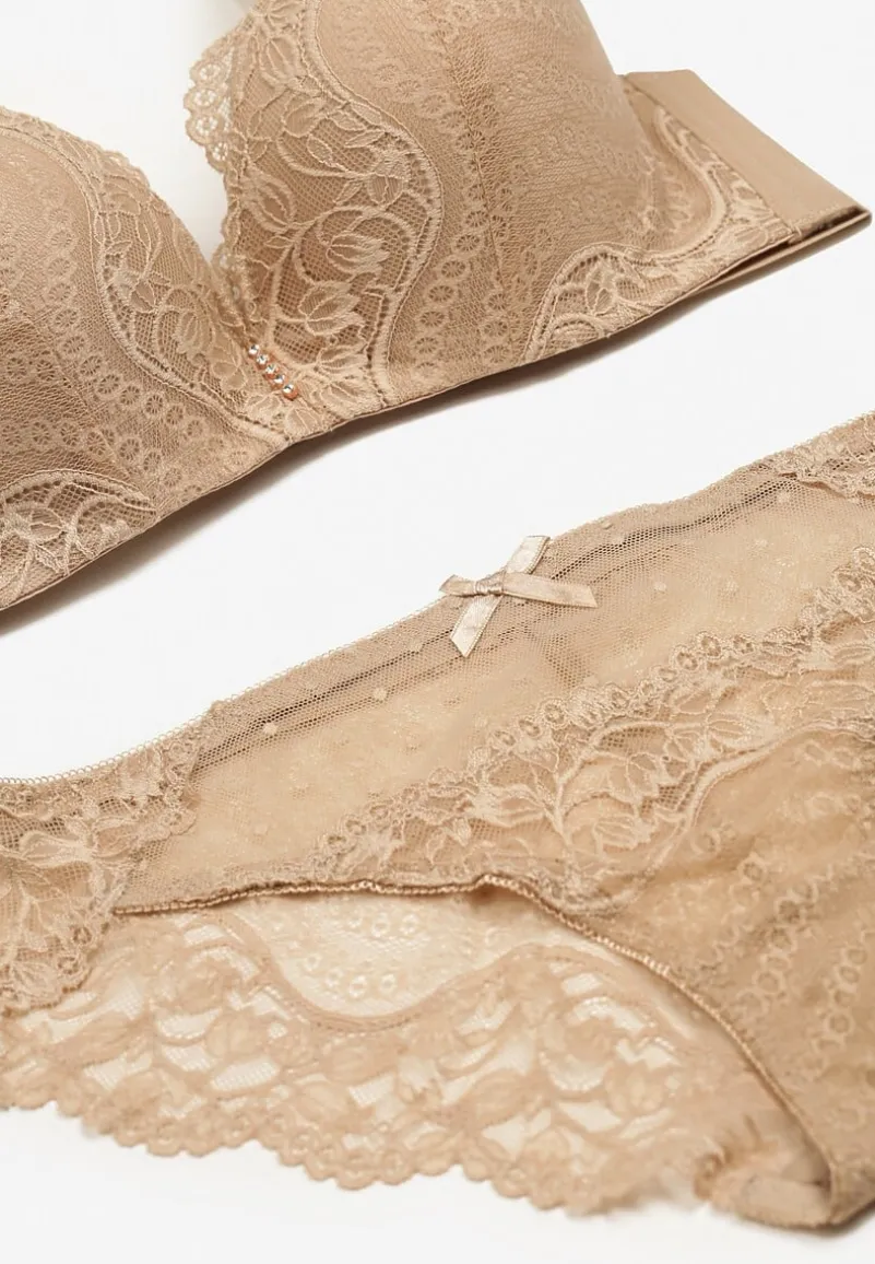Komplet koronkowy Iriniues to synonim subtelności i kobiecości, idealny zarówno na co dzień, jak i na specjalne okazje. Koronkowa linia z delikatnym wzorem dodaje bieliźnie romantycznego charakteru, doskonale komponując się z sylwetką i zapewniając komfort noszenia dzięki elastycznemu materiałowi. Fason Full Cup biustonosza oraz majtki typu figi z kokardkami to połączenie klasyki z nowoczesnymi trendami.
