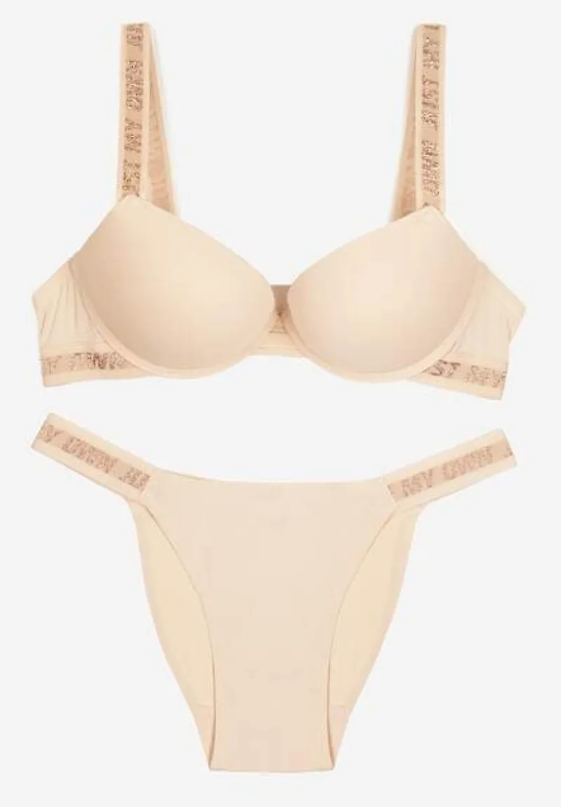Odkryj komplet Bralicia, który idealnie wpisuje się w aktualne trendy modowe. Biustonosz z efektem push-up pięknie modeluje biust i zapewnia pewność siebie na co dzień. Majtki zachwycają wygodą i elastycznością materiału, dopasowując się do sylwetki. Ozdobione atrakcyjnym napisem, wprowadzają świeżość do Twojej garderoby. Biustonosz jest zapinany z tyłu na tradycyjne haftki.