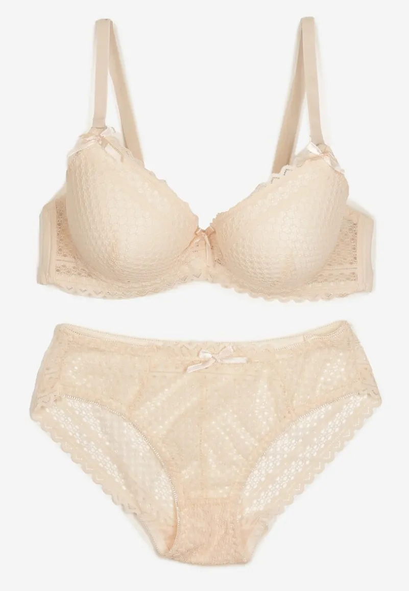Zestaw Irialynne to kwintesencja kobiecości zamknięta w delikatnej koronce, która kusi swoją strukturą i finezją. Full cup biustonosz doskonale zbiera biust, zapewniając komfort i idealne dopasowanie na każdą porę roku. Regulowane paski gwarantują idealne ułożenie, a elastyczność materiału pozwala na swobodę ruchów i dopasowanie do figury. Eleganckie majtki typu figi z koronkowymi zdobieniami są niczym druga skóra.
