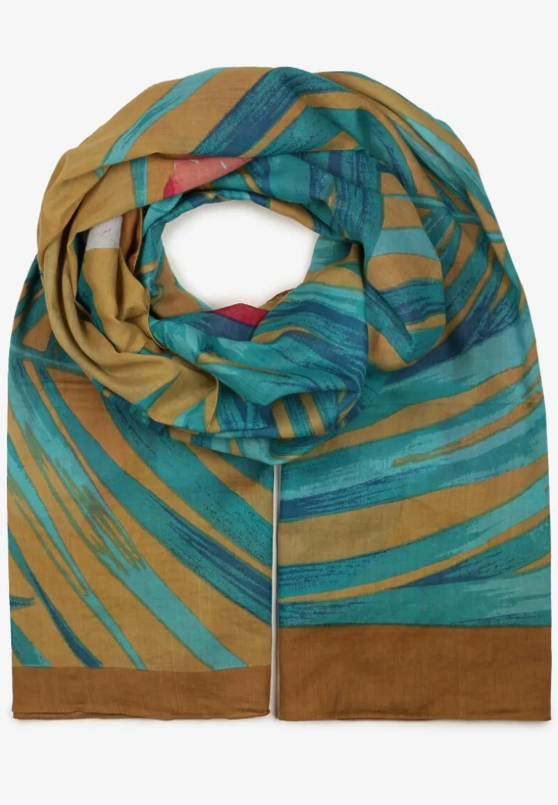 Beżowy-Niebieski Bawełniany Szalik w Print Jellala