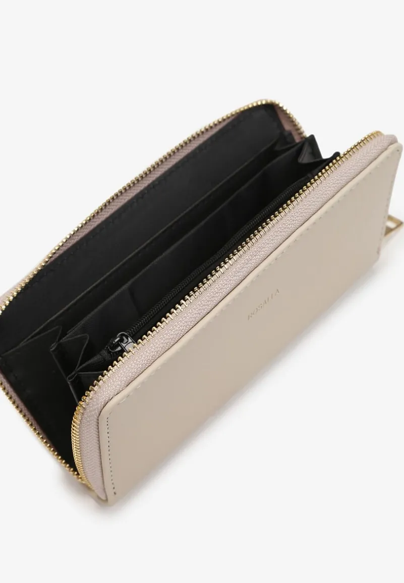 Portfel Timike prostokątny. Minimalistyczny, nowoczesny design. Wykonany z gładkiej ekoskóry. Zapinany na zamek błyskawiczny, wewnątrz przegródki na karty kredytowe, wizytówki, banknoty i zasuwana kieszonka na monety.
