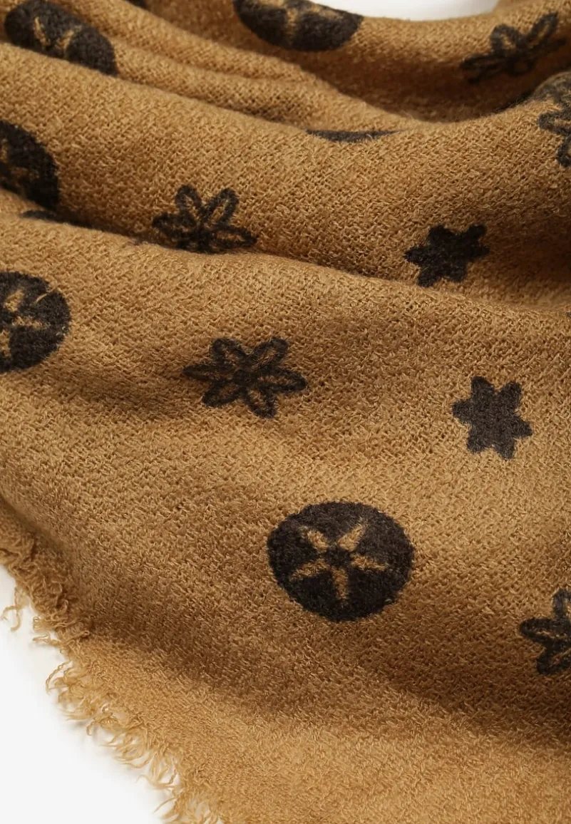 Beżowy Szalik Ozdobiony Geometrycznym Motywem z Frędzlami Nomirya