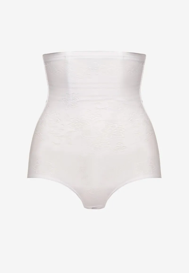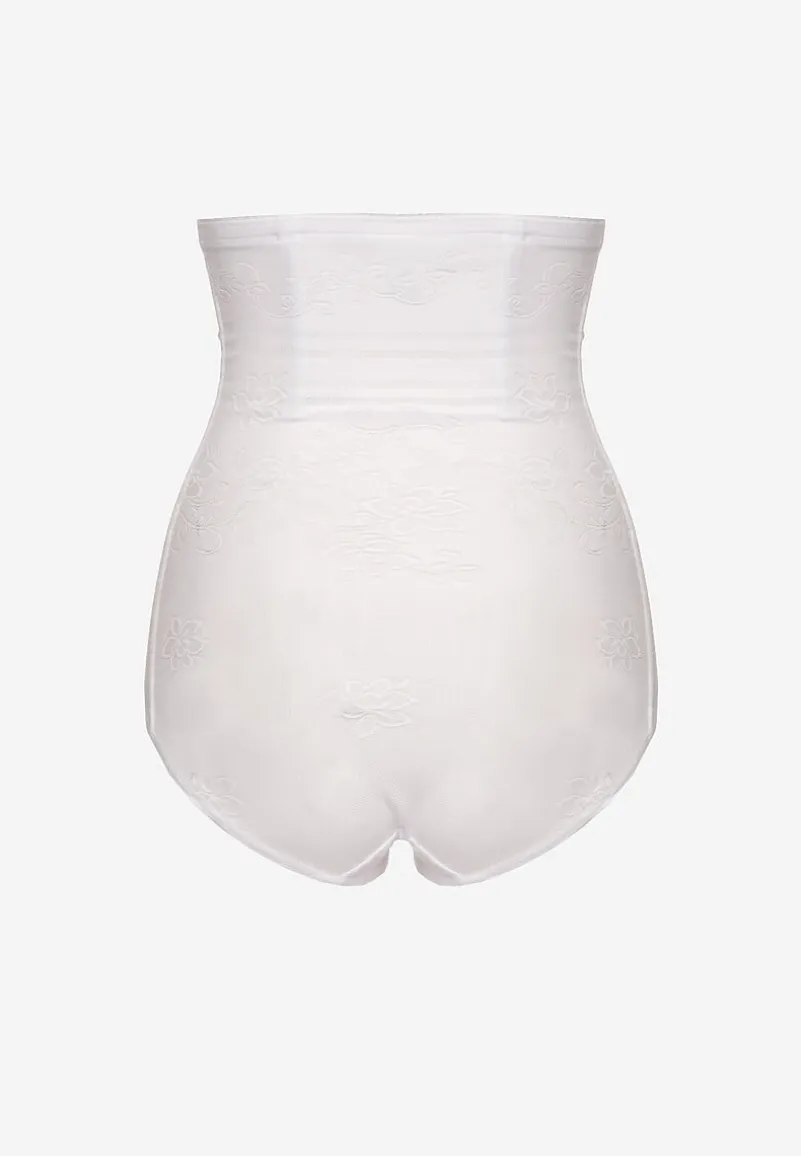 Biała Bielizna modelująca Majtki High Waist Zdobione Tłoczeniem w Kwiaty Vivirianne