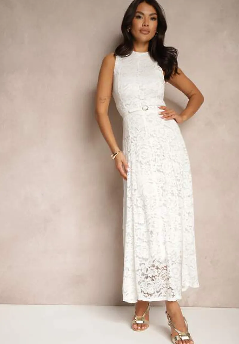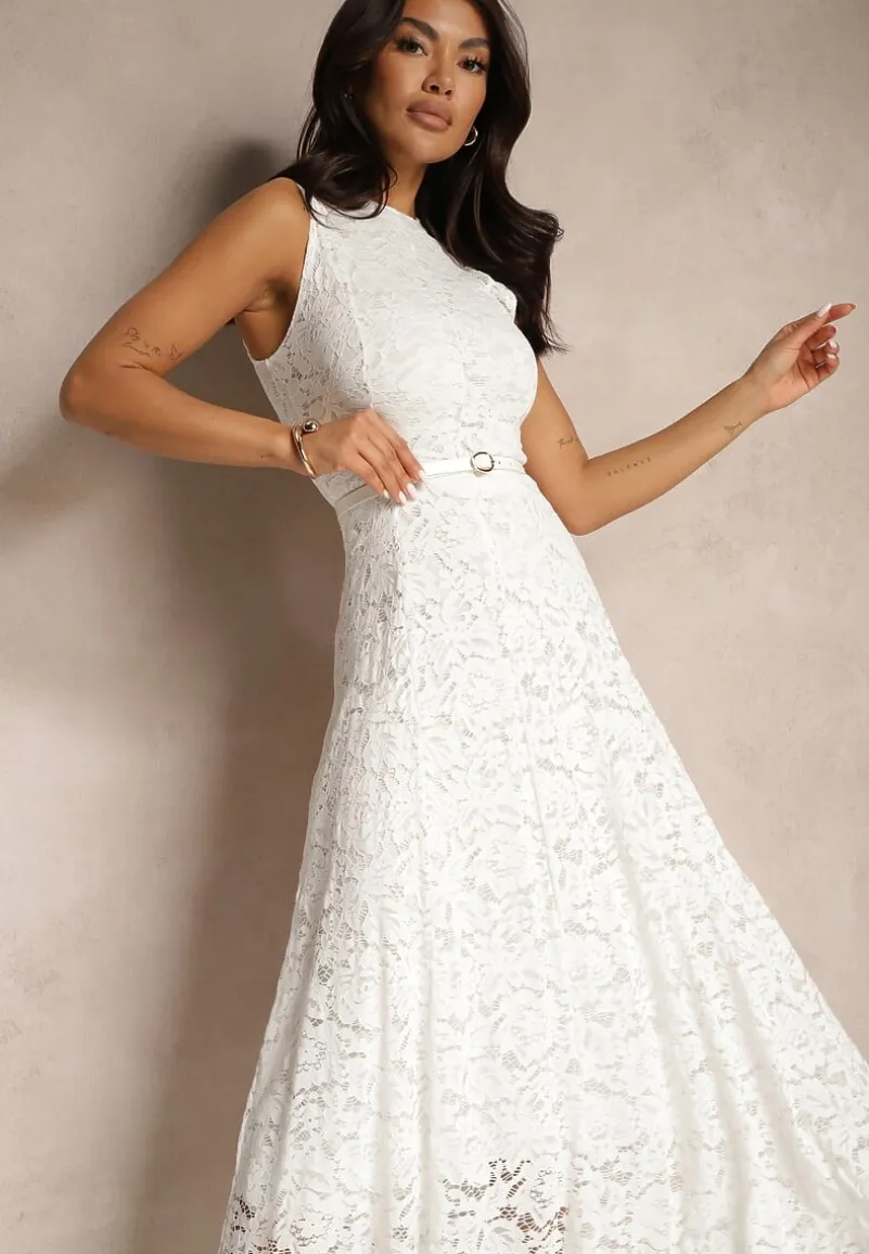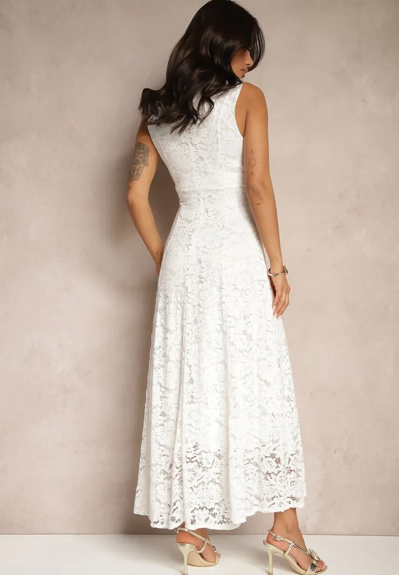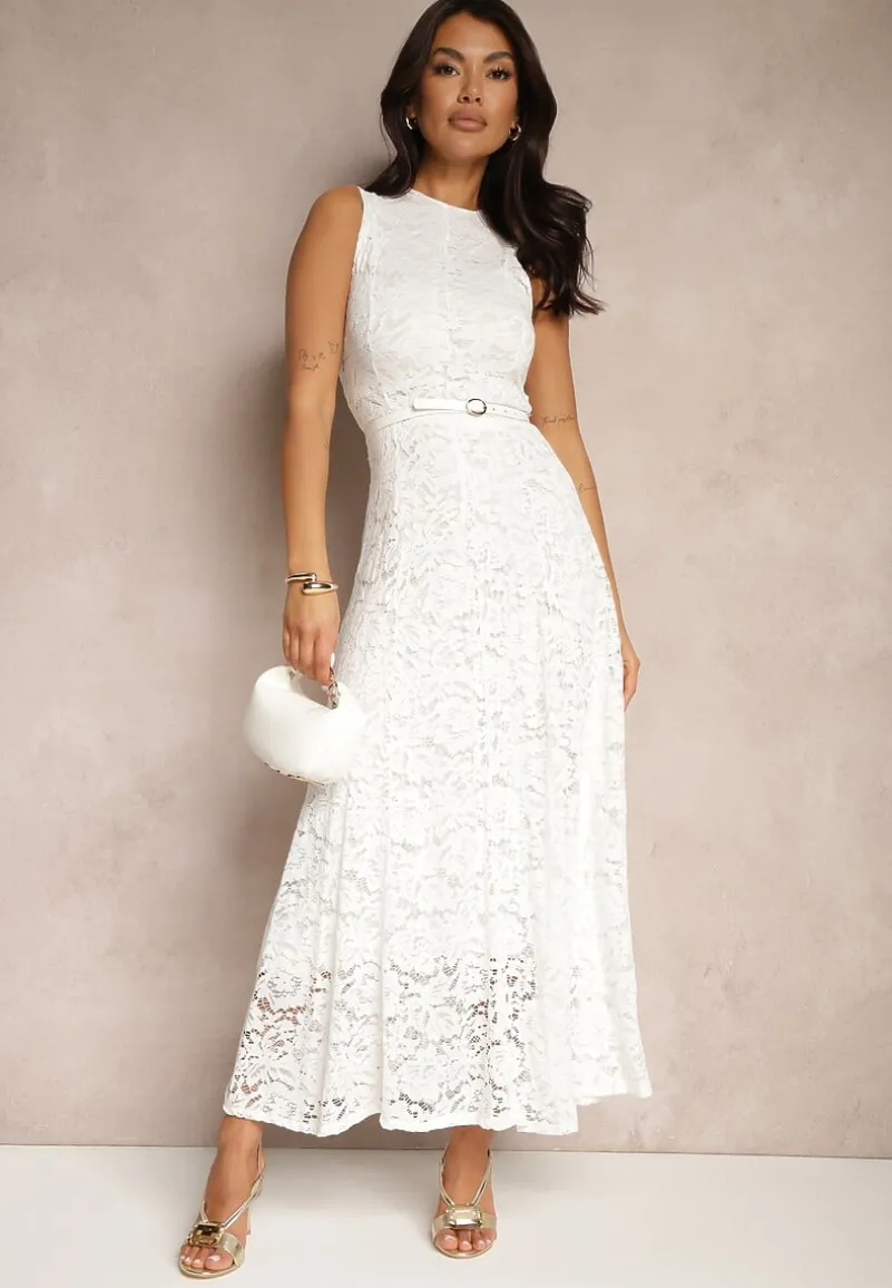 Biała Koronkowa Sukienka Taliowana Wilreti