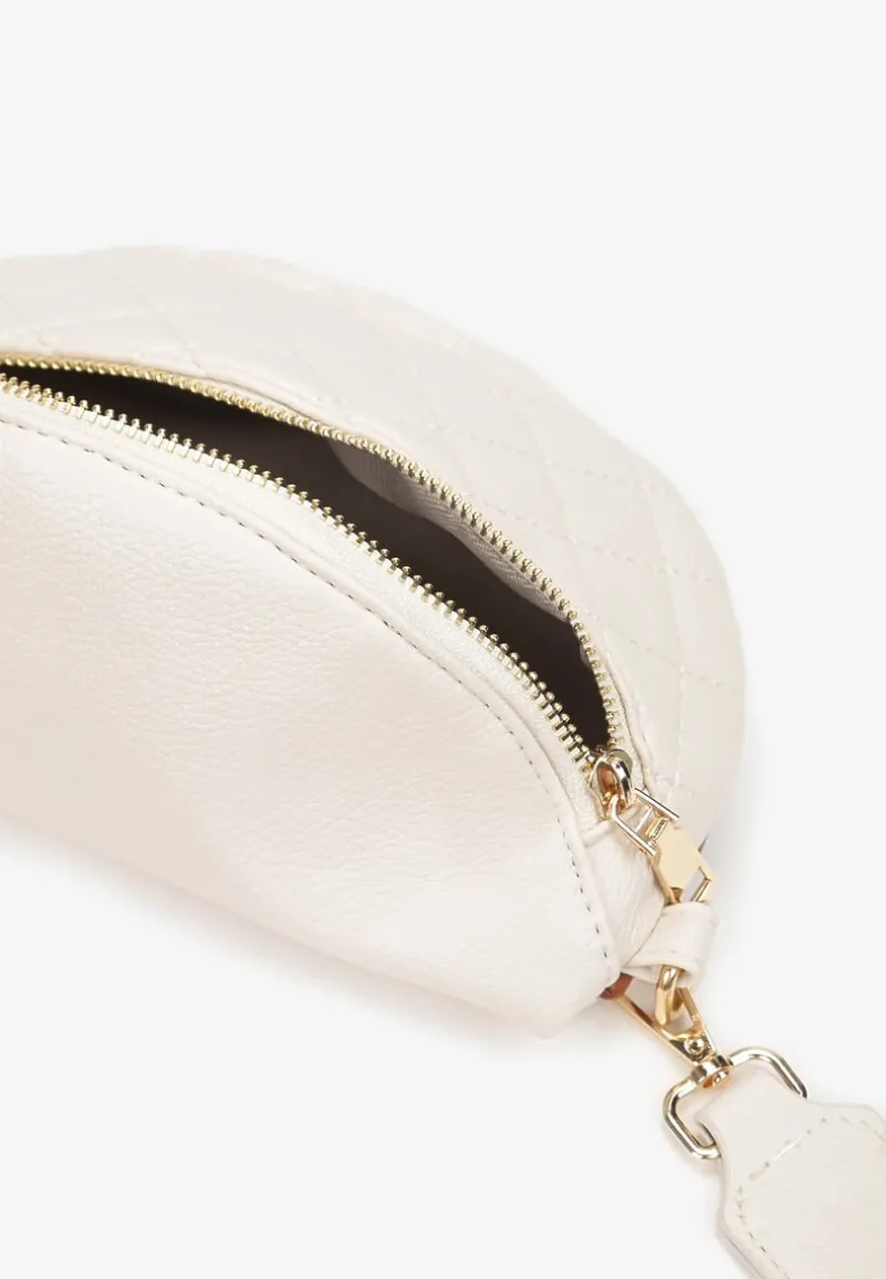 Nerka Frietoh wykonana z pikowanej ekoskóry, zawieszona na materiałowym, regulowanym pasku. Zapinana na zamek błyskawiczny, z dodatkową zasuwaną kieszonką z tyłu.