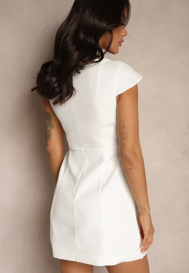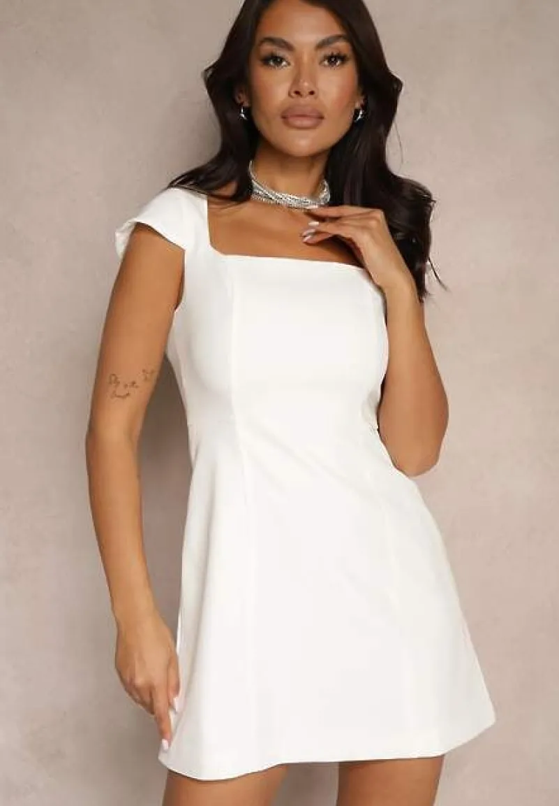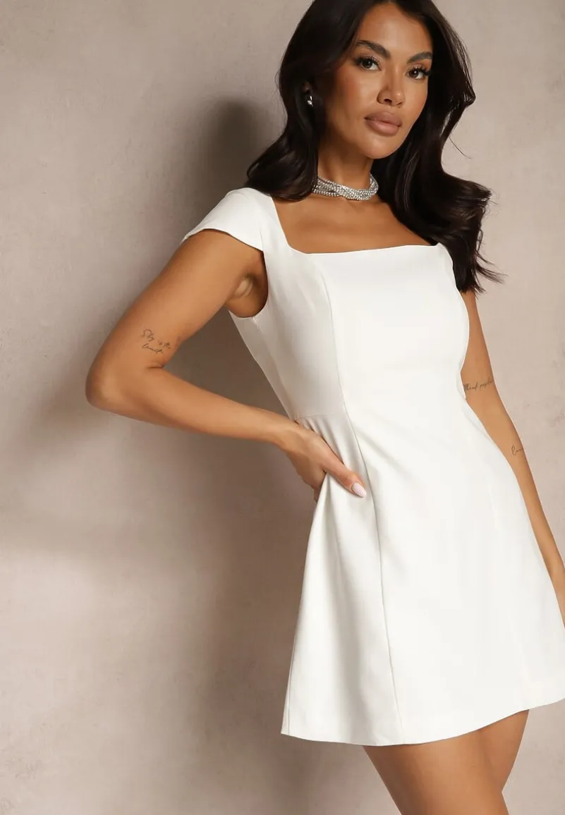 Biała Taliowana Sukienka z Kwadratowym Dekoltem Borreti