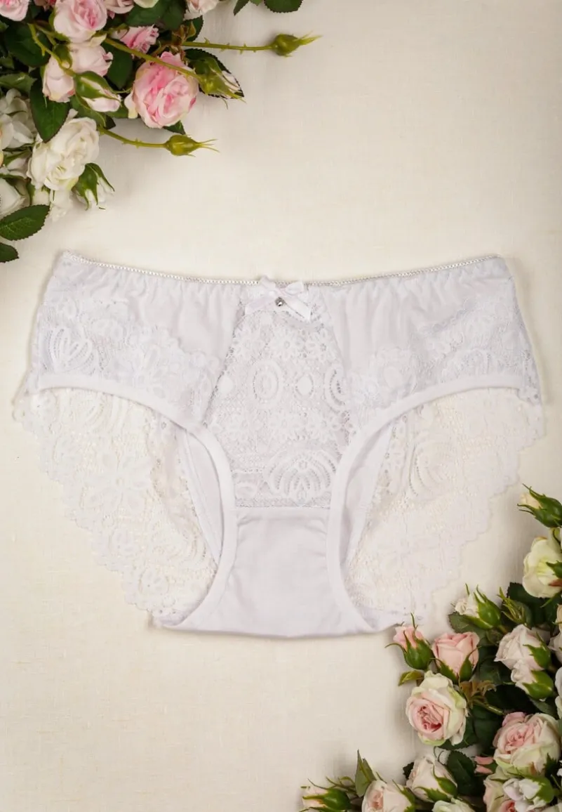 Majtki Chisa z koronkowej tkaniny. Model typu figi, dostępny w większych rozmiarach. Idealne na co dzień.