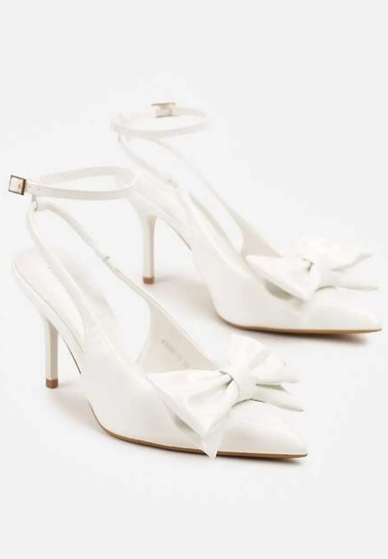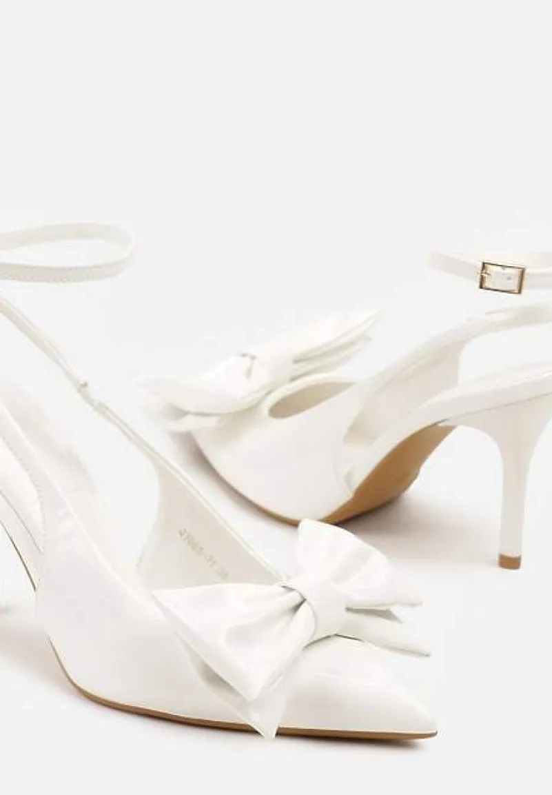 Białe Lakierowane Sandały na Szpilce Vices z Dużą Kokardką Bez Pięty Velozia