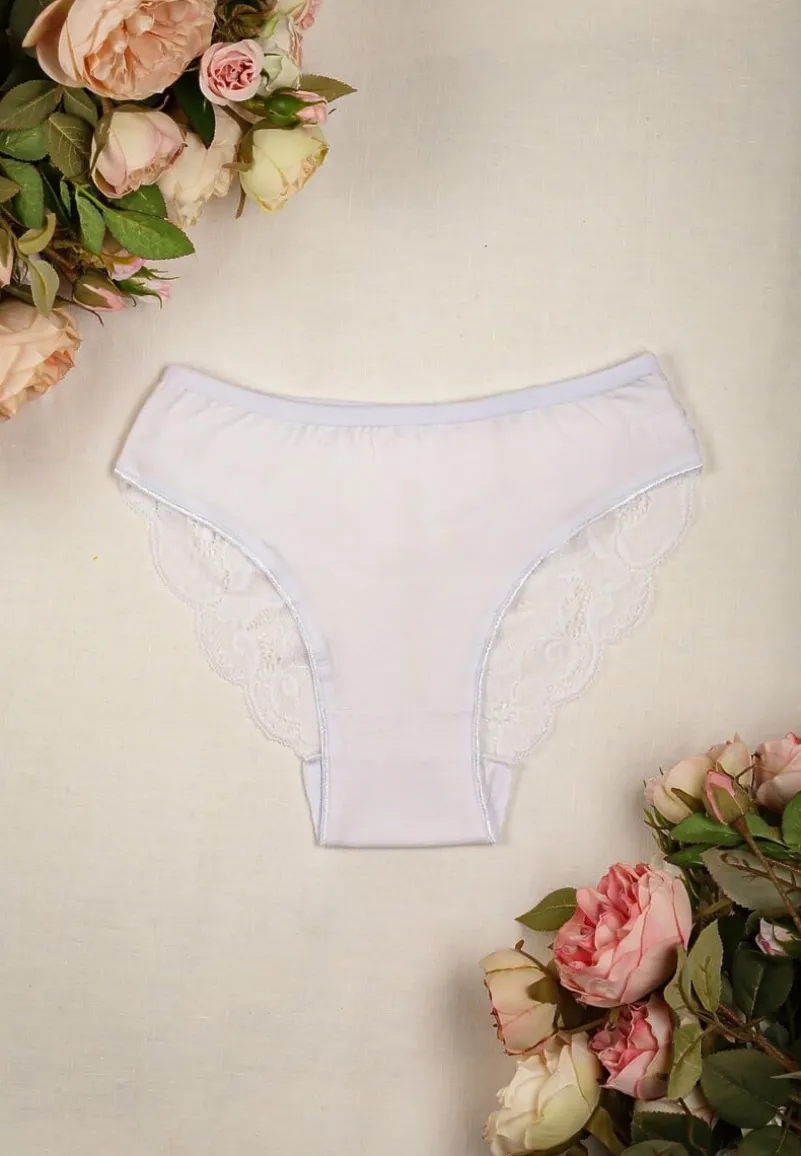 Klasyczne figi z elastycznej bawełny udekorowane koronką z tyłu.