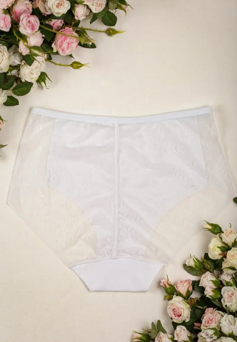 Majtki Chesen z wysokim stanem z linii plus size. Udekorowane subtelną koronką, dzięki czemu poczujesz się w nich wyjątkowo.